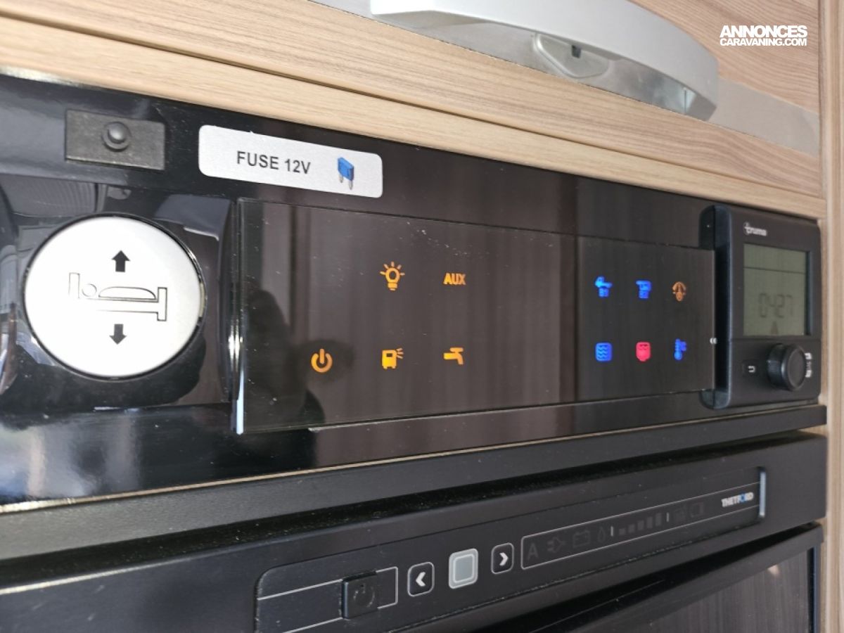 Chauffage / Chauffe eau : Truma Combi 6 - Eau propre / usées : 115 L / 85 L - Couchages permanents : lit central 195 x 150 cm - Couchages escamotables : lit de pavillon 200 x 125