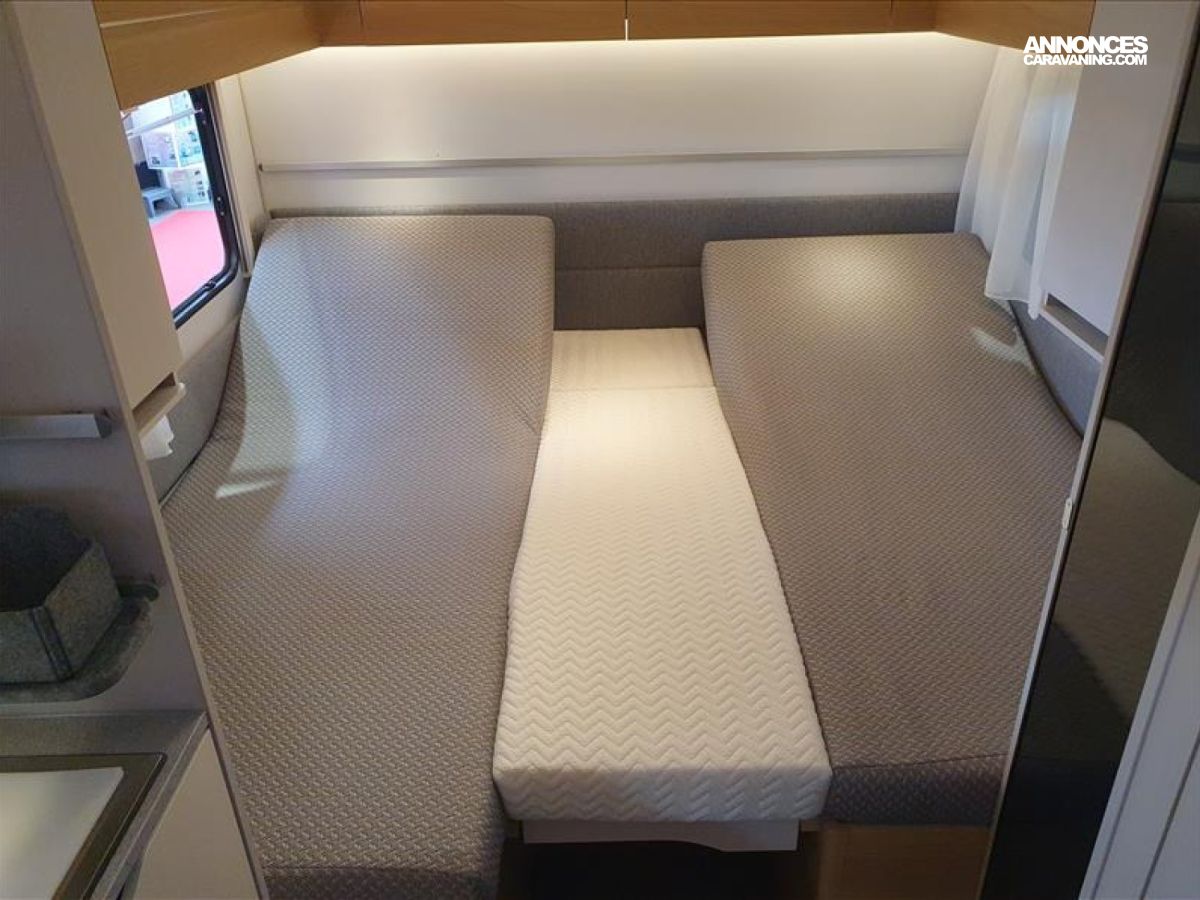 Amortisseurs, Panneau de contrôle digital, Feu arrière a LED, Lanterneau mini heki 500*500, Réfrigérateur 140 L, Sound systeme visaton, Hotte aspirante, Stabilisateur AKS, Réchaud 3 feux avec allumage électrique, Porte d'entrée en 1 pièce avec fenêtre, Appui-tête relevable lit double, Boiler 5L truma terme, Fenêtre vitrage double paroi avant, Chauffage alde à circualtion d'eau, Transformateur 400V avec panneau de contrôle, Vidange centrale d'eaux usées, 4 coussins décoratifs, Chauffage à gaz Truma S3004