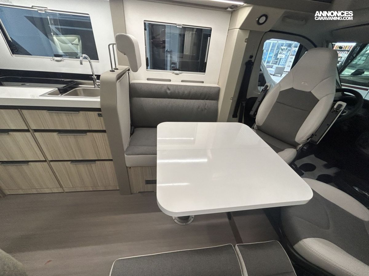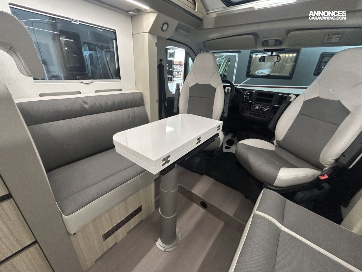 profilé Lit jumeaux et salon face face aux dimensions proches d’un fourgon, batterie lithium