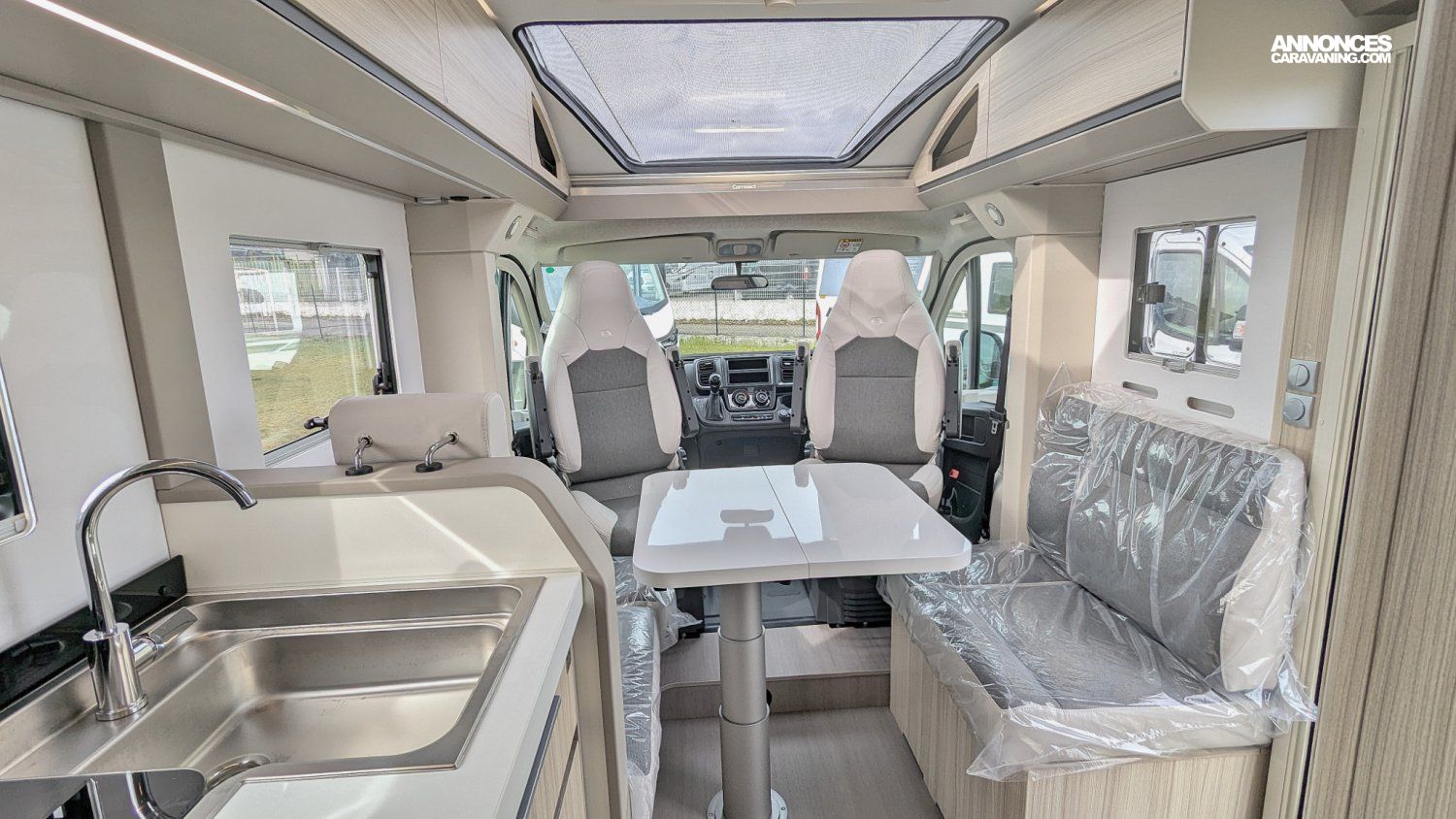 Anti-brouillard, Batterie LITHIUM, Boite automatique, Caméra de recul, Chauffage TRUMA Combi 4 CP Plus & I-Net, Climatisation cabine, Commande au volant pour radio, Grand lanterneau panoramique de cabine, Hotte aspirante, Optimisateur de charge, Panneau solaire 140W, Peinture métallisée, Phares anti-brouillard, Porte cellule vitrée, Radar de recul, Rail d''arrimage soute, Réfrigérateur, congélateur, Régulateur de vitesse, Réservoir eaux usées isolé, Salon face/face, Station multimédia avec Cam de rec, Store extérieur, Stores plissés cabine, Traction +, TV