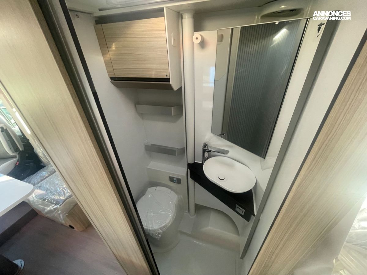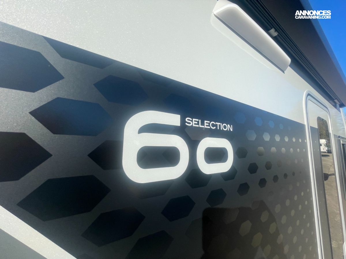 Soute garage avec revêtement textile, Tapis premium garage en caoutchouc, Stores d’occultation cabine et pare-brise, Commandes au volant, Réservoir carburant 90 L, Matelas mousse haute densité, Réservoir d’eau usée chauffé et isolé, Pare-chocs peints, Antibrouillards avant, Porte cellule avec moustiquaire, Support TV, Feux arrière full LED, Fiat Ducato 2.2L 140cv 35L, Nouveau design 60e anniversaire, Toit panoramique cabine, Grand réfrigérateur 149 L, Égouttoir cuisine