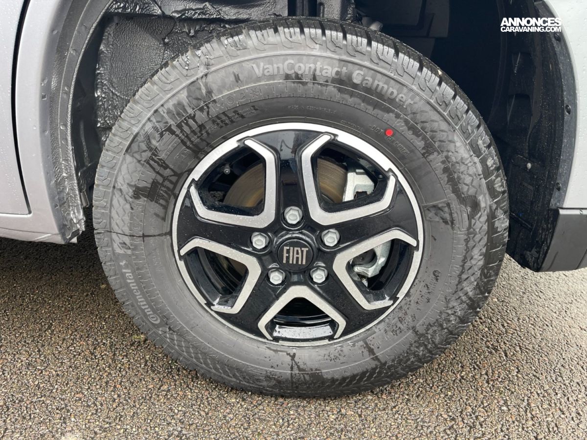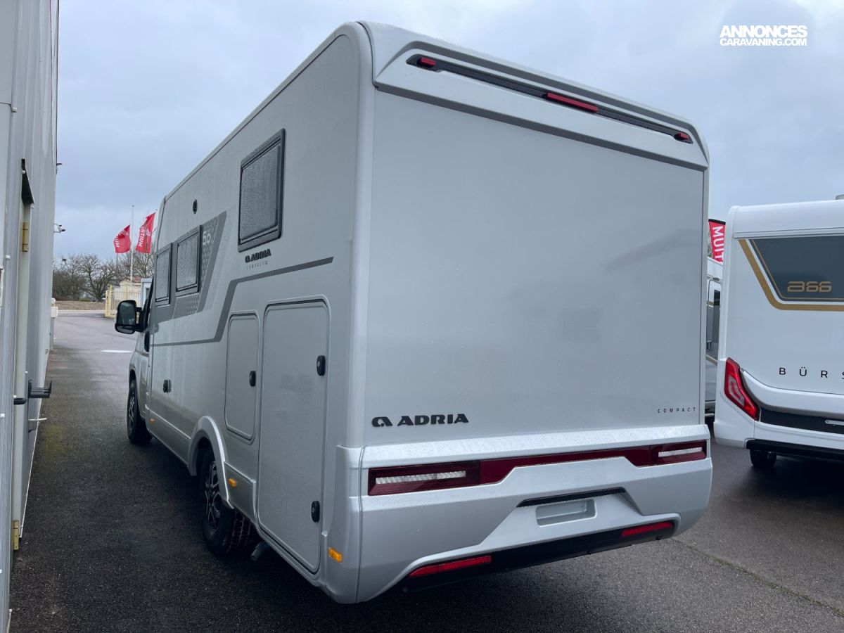 Transmission manuelle, Climatisation manuelle, Store d'occultation pare-brise et fenêtres latérales cabine, Pack commandes au volant, antenne dans le rétroviseur et HP, Pneumatique spécial Camping-car, Traction avant, Feu arrière full LED design Adria, Pack sièges pivotants + rangement sous sièges + Traction+, Pack pare-chocs peints + plaque de protection noire + feux a, Rétroviseurs électriques et dégivrants, ESP, Cruise control with speed limiter FIAT, Radar de recul, Protection plancher polyester, Revêtement textile dans la soute garage, Anti-brouillard arrière, ABS + EBD, Feux de position arrière LED et feux stop