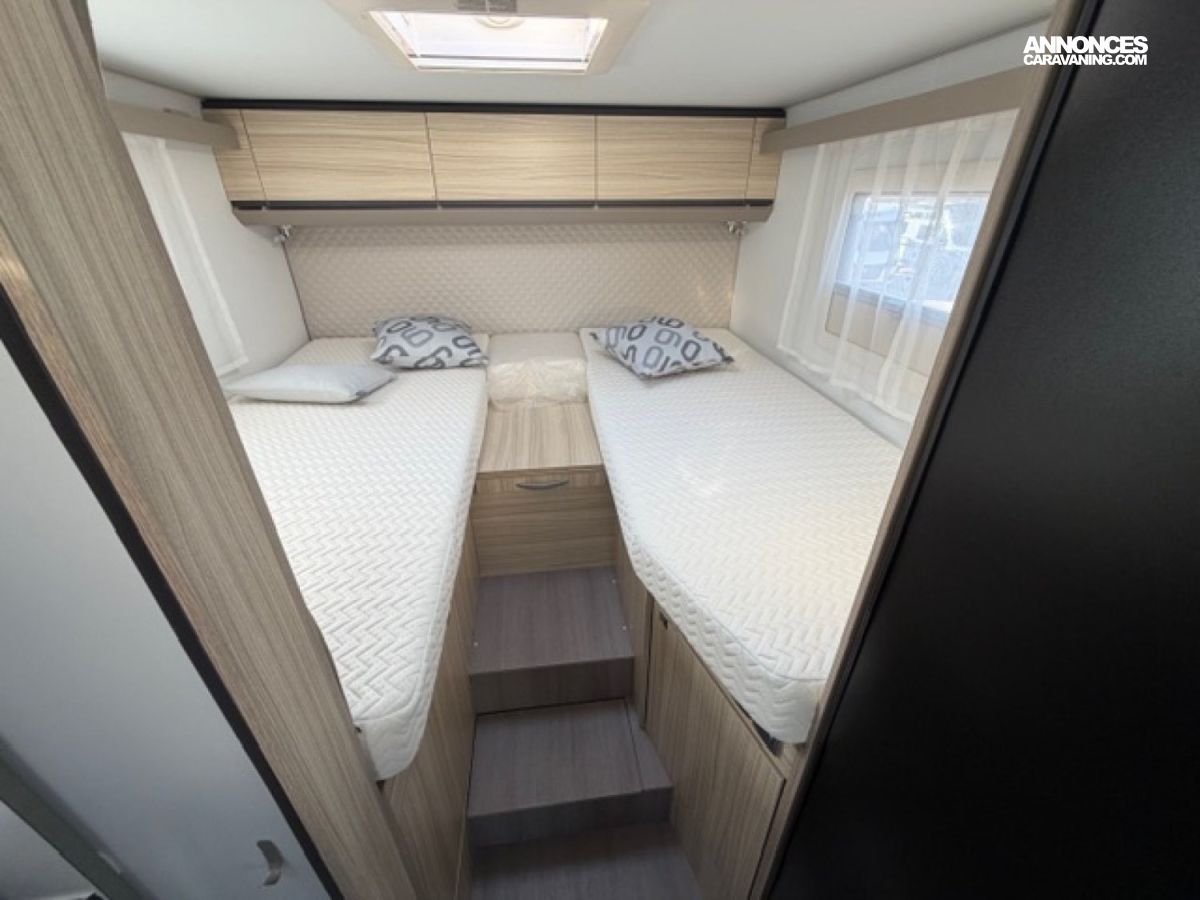 Egalement capable de vous emmener partout grâce à sa faible largeur, il assure un haut niveau de confort avec son grand salon face face tout en plancher plat, sa salle d'eau Duplex avec paroi pivotante, ses deux lits jumeaux pouvant se réunir pour ne faire qu'un et son énorme soute sous la chambre. Enfin, sa haute qualité de construction et d'isolation (Comprex) achèveront de vous convaincre !!