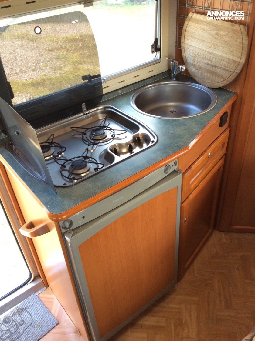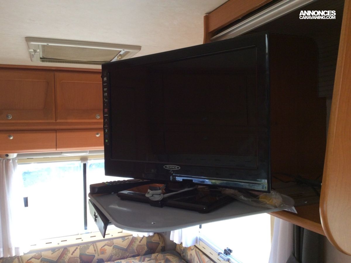 CELLULE: Réfrigérateur trimixte, Truma Combi ECS & Chauffage, Télévision & antenne Hertz., WC cassette, Lanterneaux, Plaque Cuisson 3 foyers, Eclairage tout Led., Marche-pied électrique.