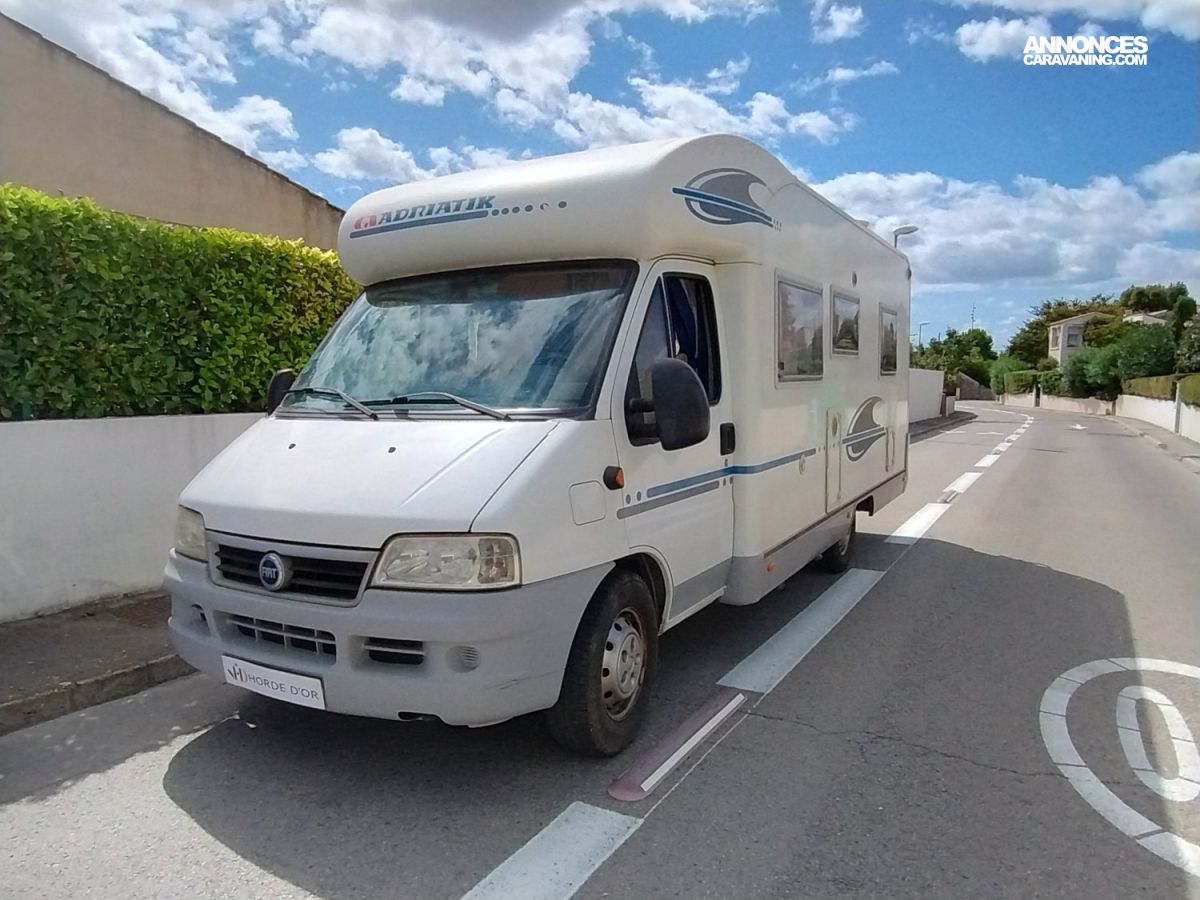 Ne manquez pas ce très joli profilé ADRIA CORAL 650 SP – 1° Main - sur porteur Fiat Ducato 146CH et châssis ALKO.