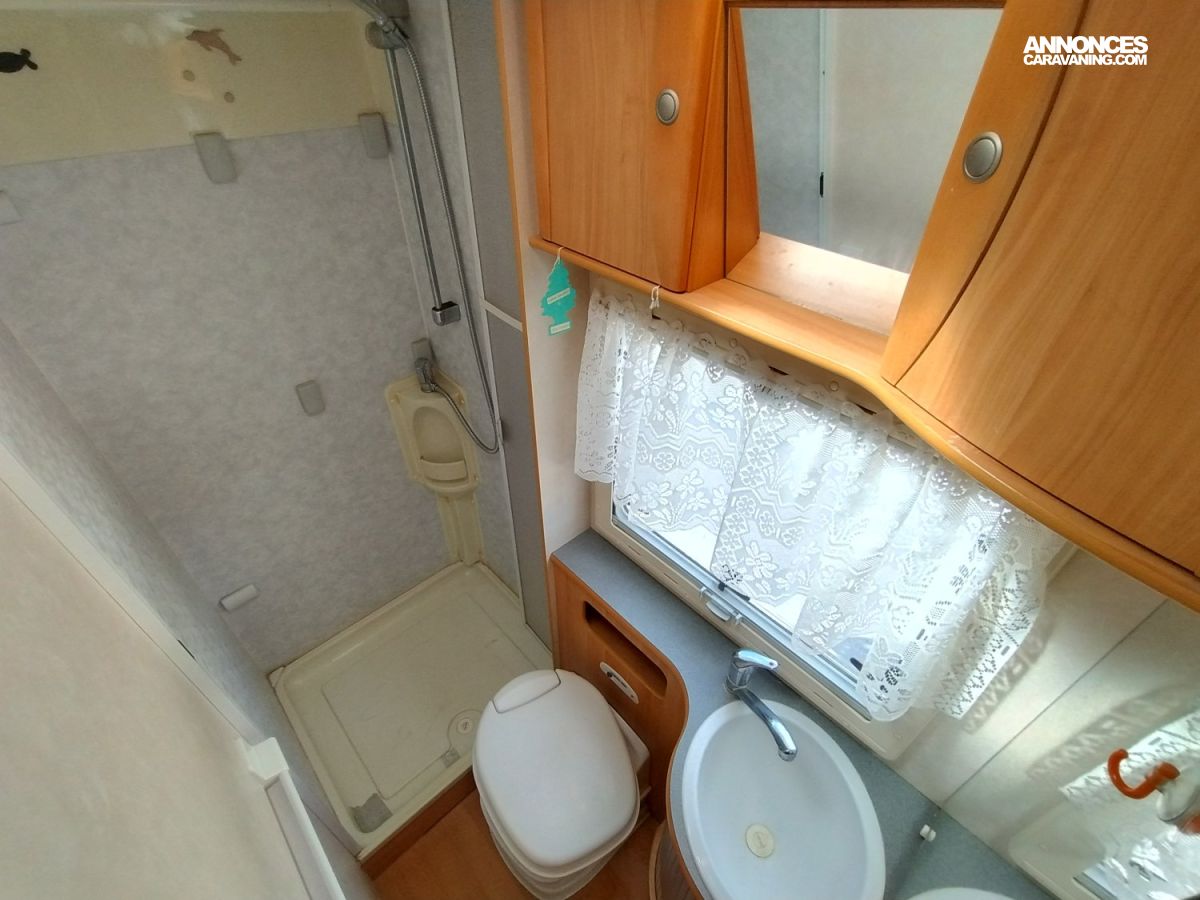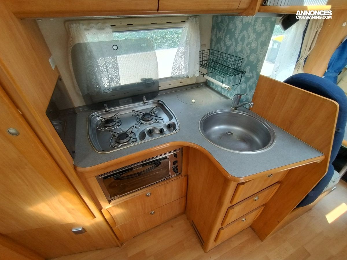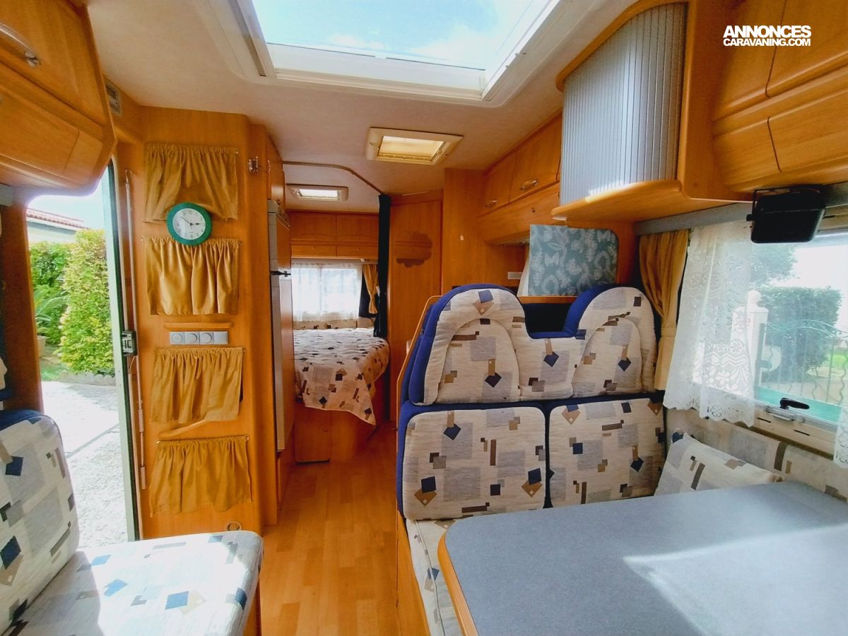 Une implantation idéale pour un couple ou une famille : un lit permanent à la française à l’arrière et un grand salon à l’avant pouvant accueillir 2 couchages supplémentaires. Une cuisine bien équipée aux nombreux rangements avec grand frigo-congélateur et four au gaz, une salle d'eau fonctionnelle et lumineuse. Le tout complété par une grande soute accessible depuis l’intérieur.