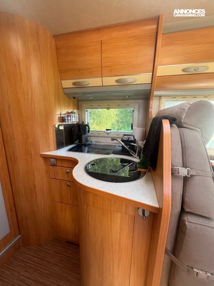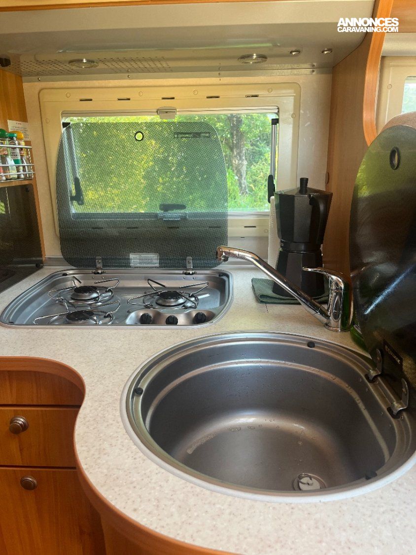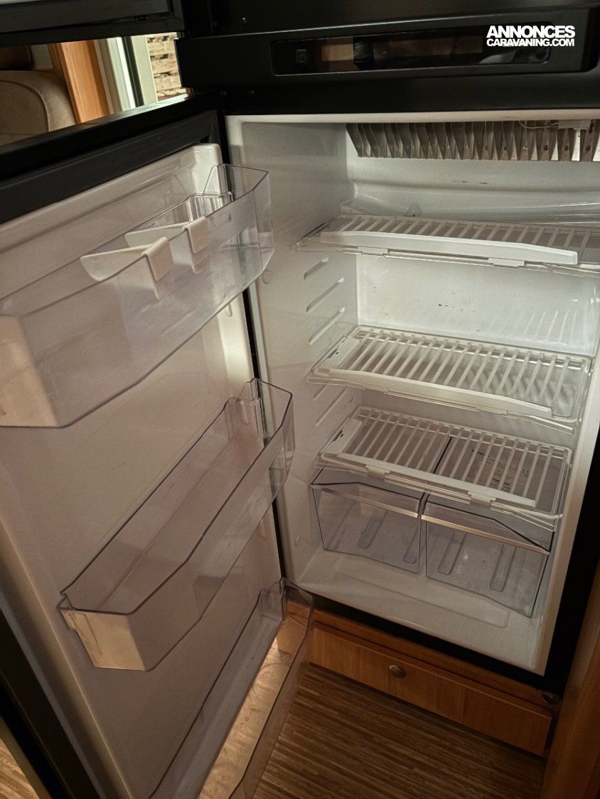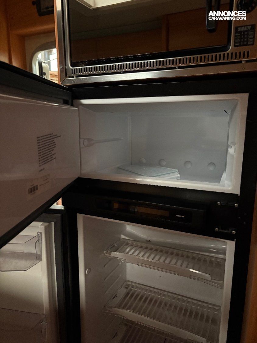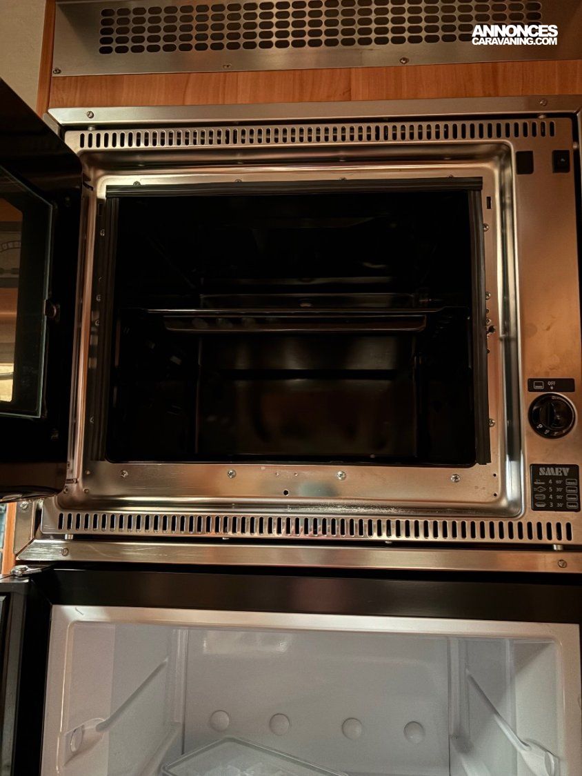 Frigo avec congélateur, four, nombreux rangements dans tout l’habitacle.