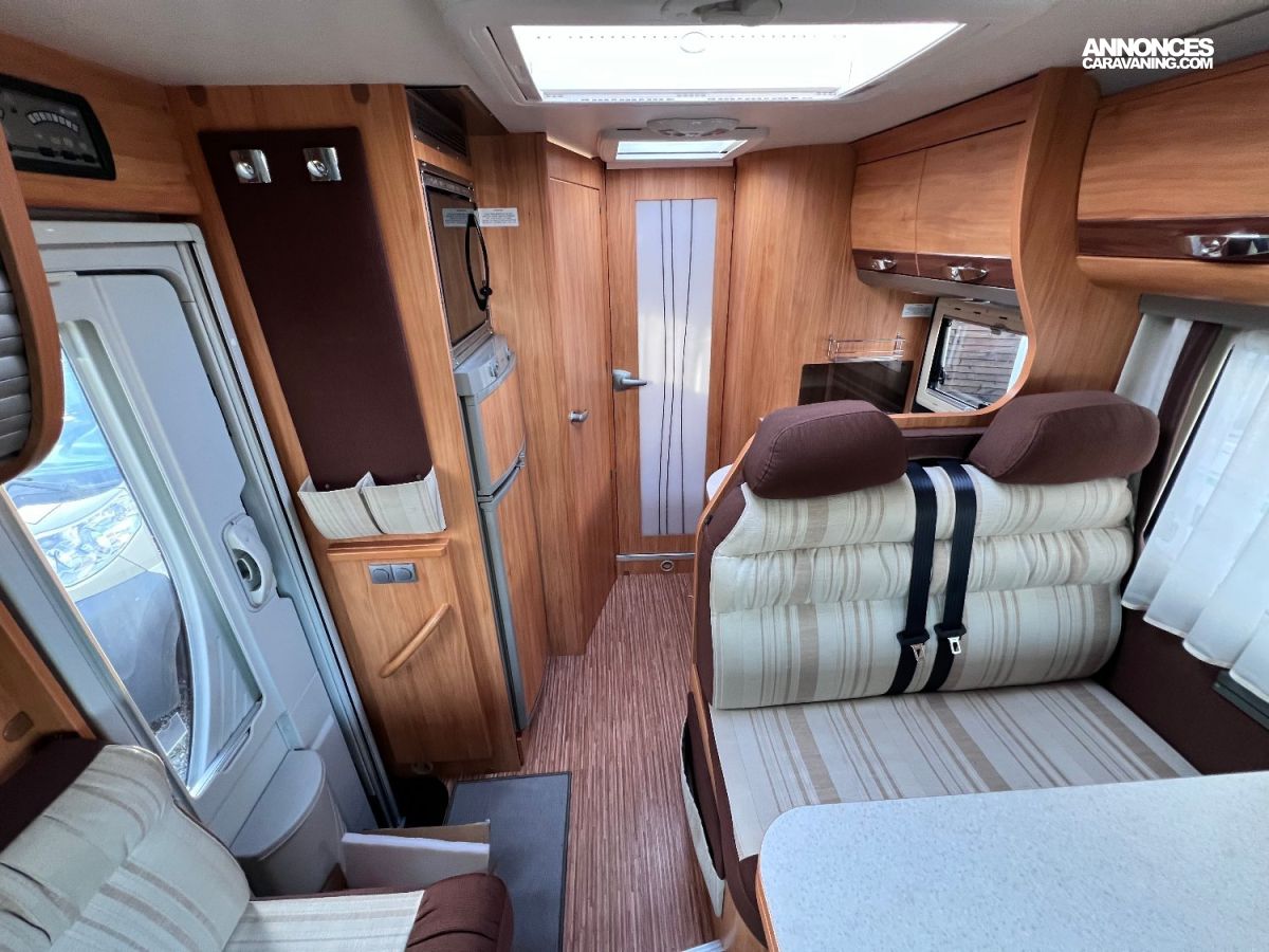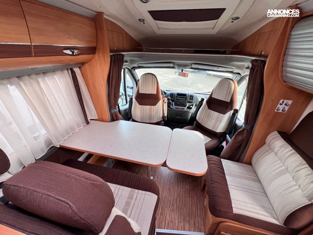 OPTIONS : store extérieur / antenne satellite automatique / TV / panneau solaire / caméra de recul / suspensions pneumatiques (coussins remplacés en 2022) /stores plissés de cabine / porte cellule centralisée 2 points de fermeture / grand frigo / four à gaz / lit central de 200 cm de long…