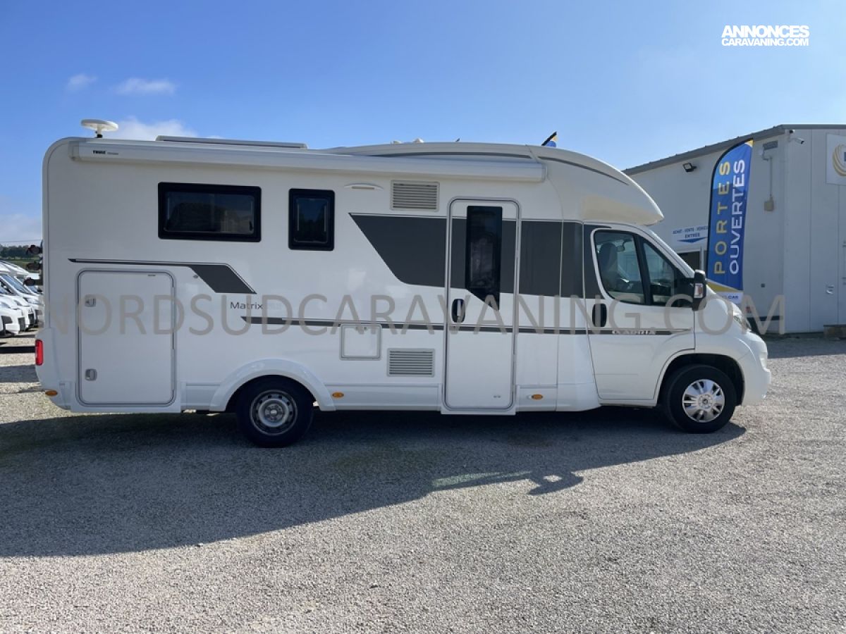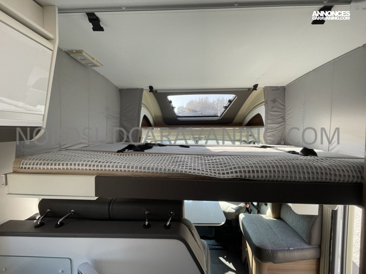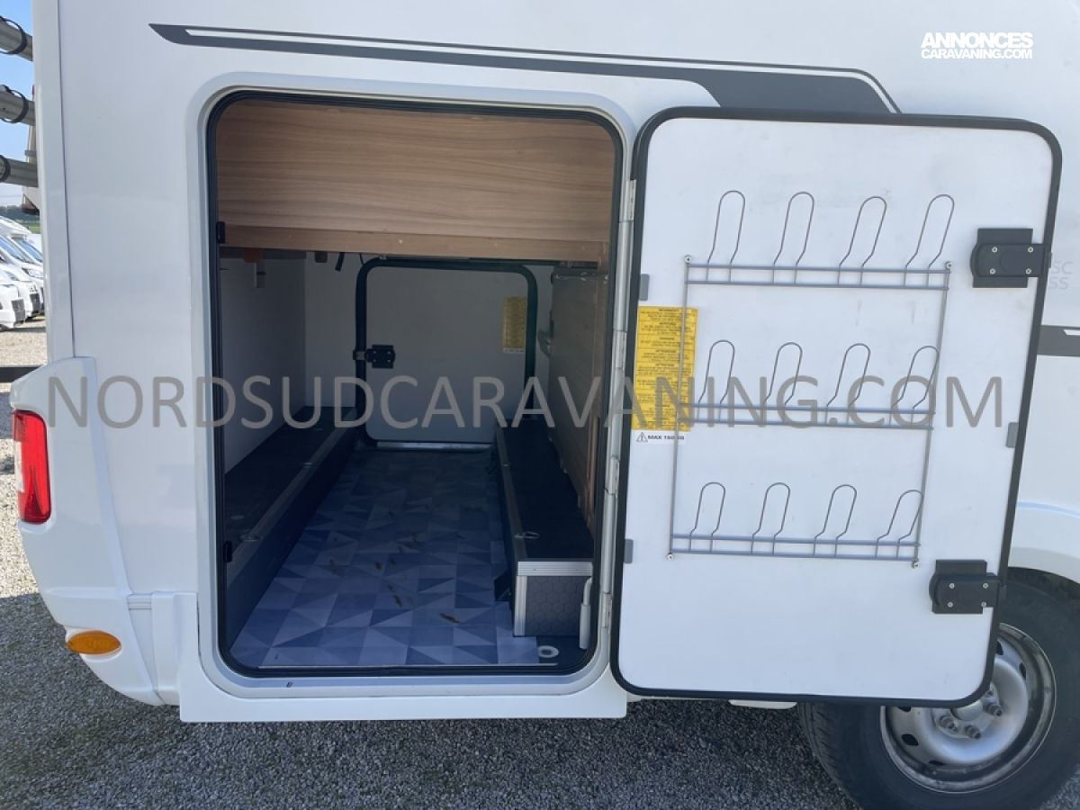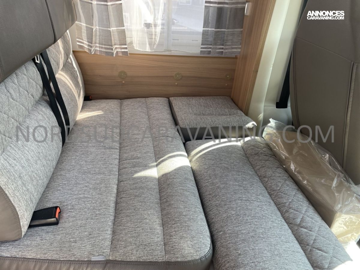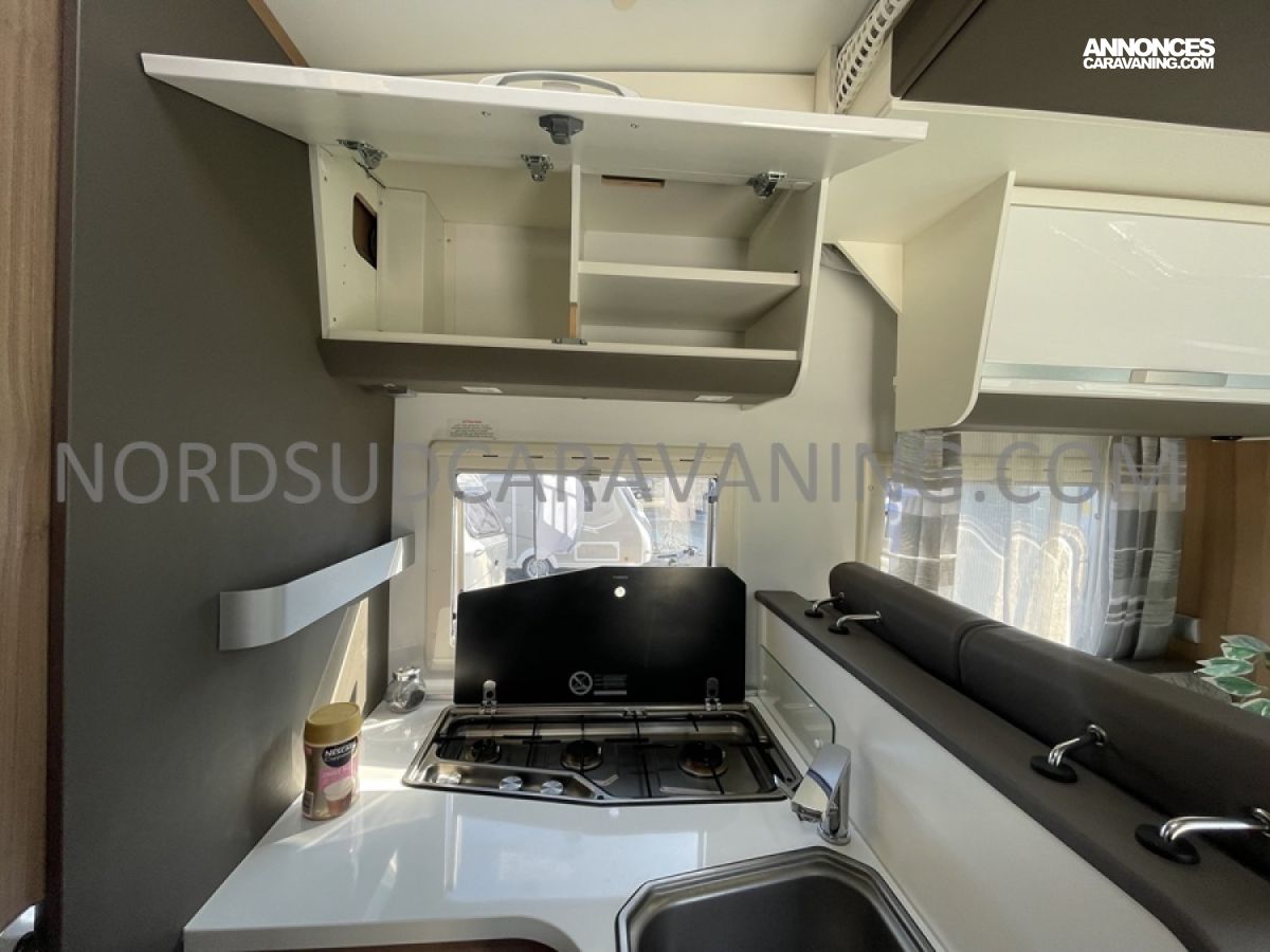 Grâce à sa forme compacte, sa maniabilité vous permettra de circuler ou de vous garer facilement. Vous profiterez de sa grande chambre avec son lit central pour vous garantir une parfaite nuit de sommeil. Son espace dinette agréable et convivial se transforme également en couchage supplémentaire avec son lit dinette et son lit pavillon. Sa cuisine fonctionnelle grâce à ses nombreux rangements optimisés est équipée d’une plaque de cuisson 3 feux gaz avec un couvercle en verre, un évier inox et un réfrigérateur congélateur 141L. Son coin toilette agréable avec WC, Lavabo et Miroir. Juste en face, une grande douche indépendante. Sa soute garage pratique pour transporter son matériel de camping, vélos... Sans oublier ses nombreux agencements astucieux !