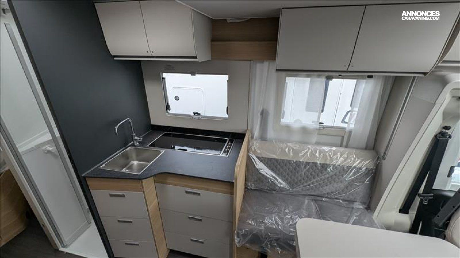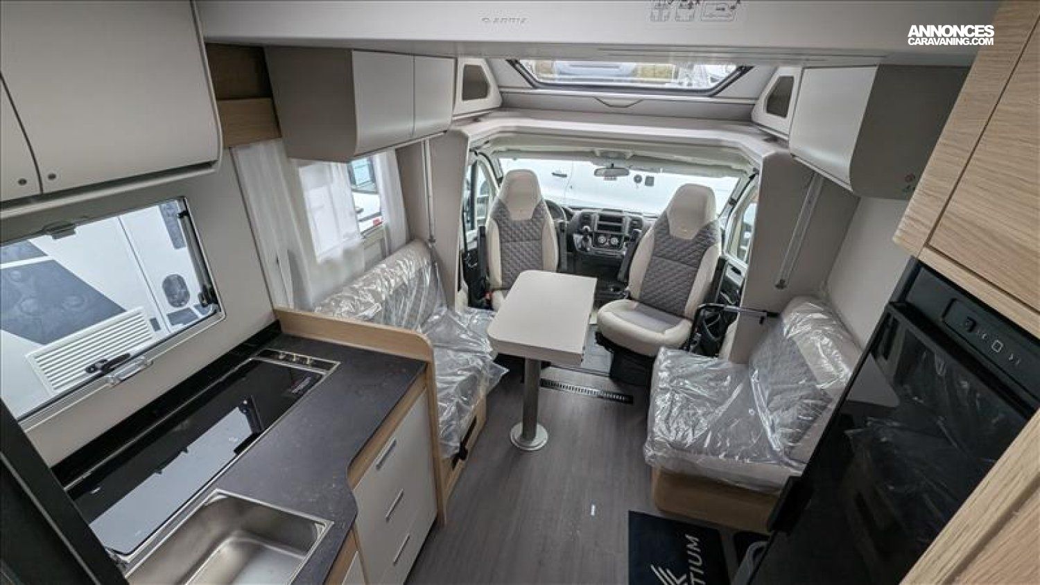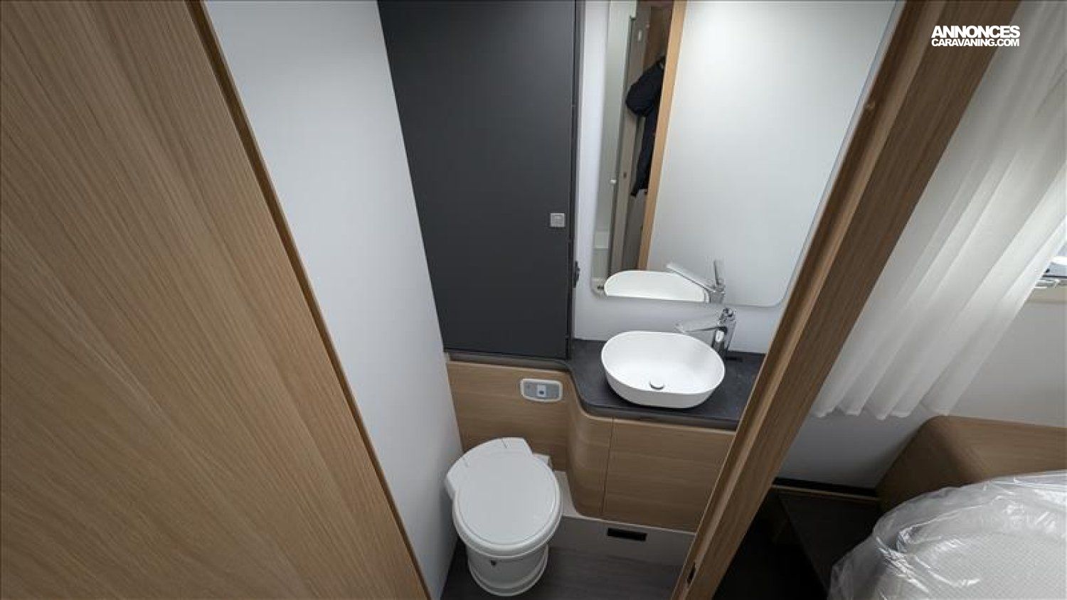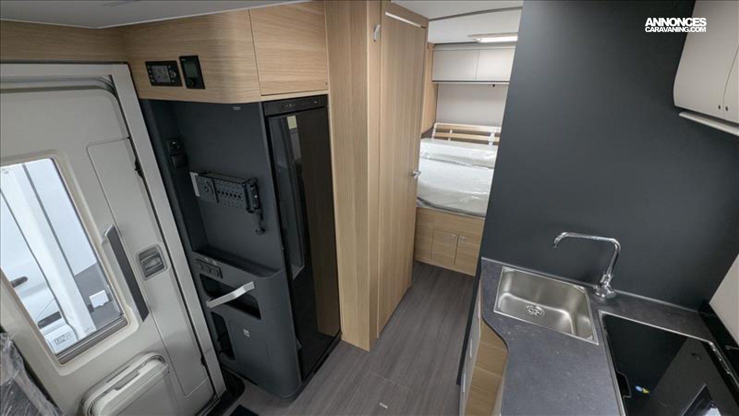 Chauffage / chauffe eau gaz Truma 4000 w, Vanne électrique de vidange des eaux usées, Stores occultation cabine, Bas de caisse en aluminium, Réfrigérateur 142 L, Hotte cuisine, Climatisation menuelle en cabine, Pare chocs peint + feux antibrouillards, Tête de lit arrière coulissante, Porte cellule vitrée + moustiquaire + centralisée, Marche pied électrique, Radar de recul, Plancher plat