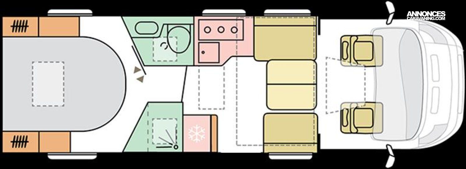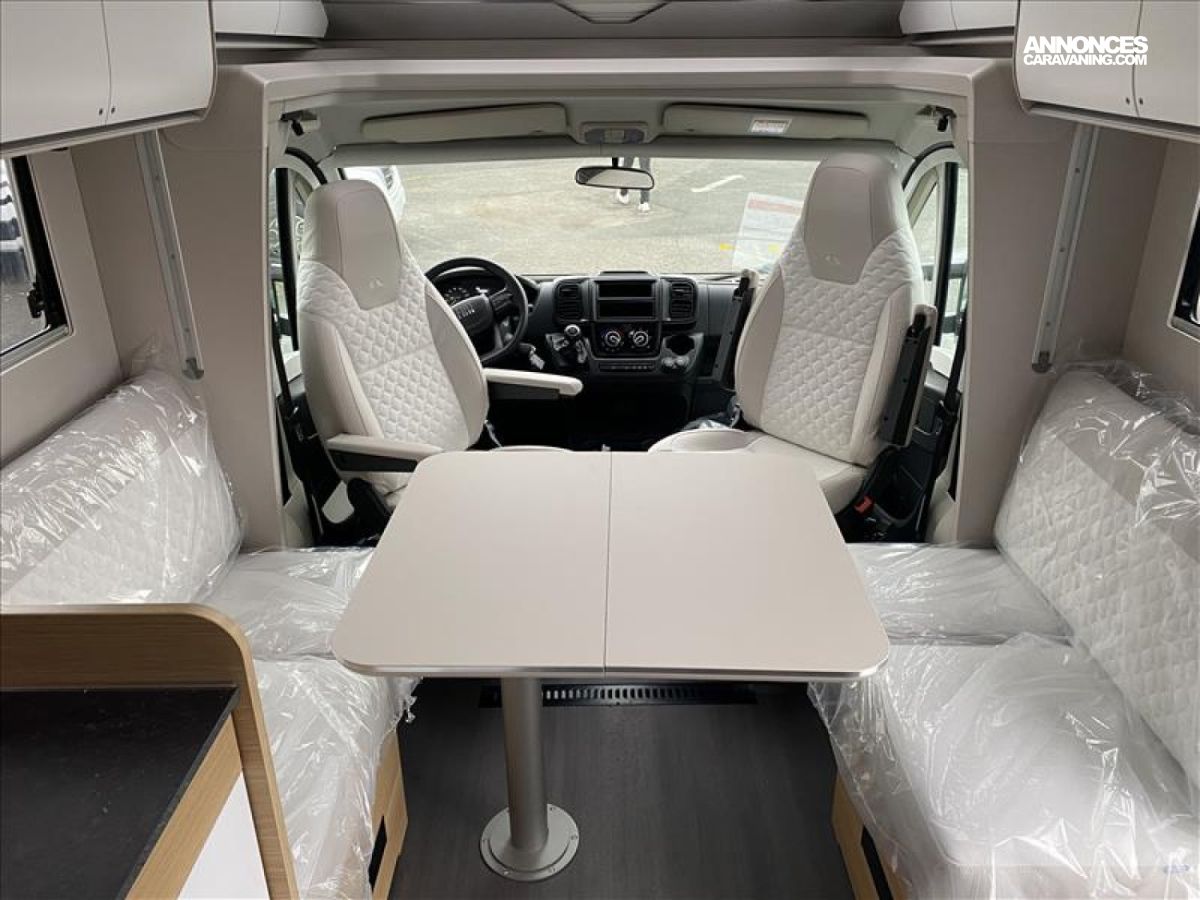 Rétroviseurs électriques et dégivrants, ABS + EBD, Airbag conducteur et passager, Chauffage soute, Climatisation cabine manuelle, Radar de recul, Réfrigérateur 142 L, Réservoir d'eaux usées isolé et chauffé 85 L, Suspension pneumatique arrière, Régulateur et limiteur de vitesse, ESP, Extincteur, Hotte aspirante, Lit de pavillon électrique, Pack commandes au volant, antenne dans le retro + HP