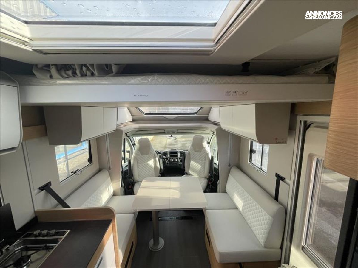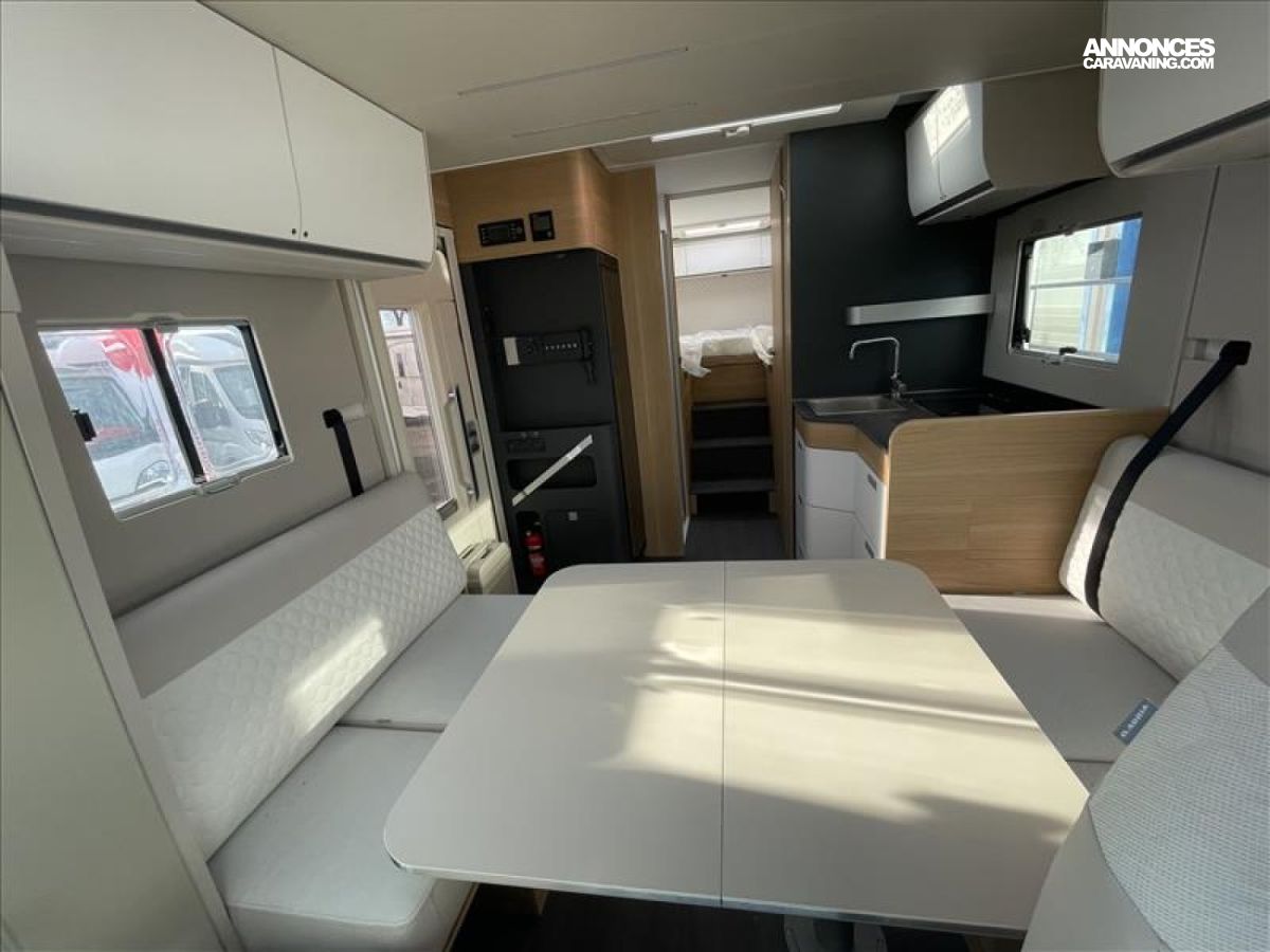 Chauffage/chauffe-eau GAZ TRUMA COMBI 6, LITS JUMEAUX: 197x83-202x83 cms, LIT PAVILLON: 200x125 cms, Climatisation cabine, Support TV, Hotte aspirante, Radars de recul, Réfrigérateur 142 L, Régulateur de vitesse, Réservoir des eaux usées isolé et chauffé, Stores plissés de cabine, Suspension pneumatique