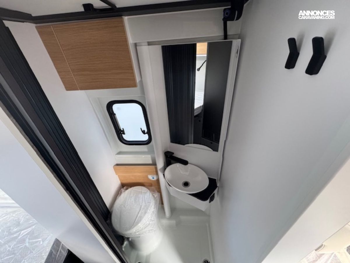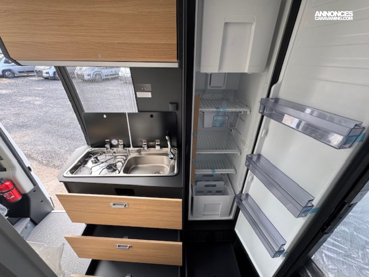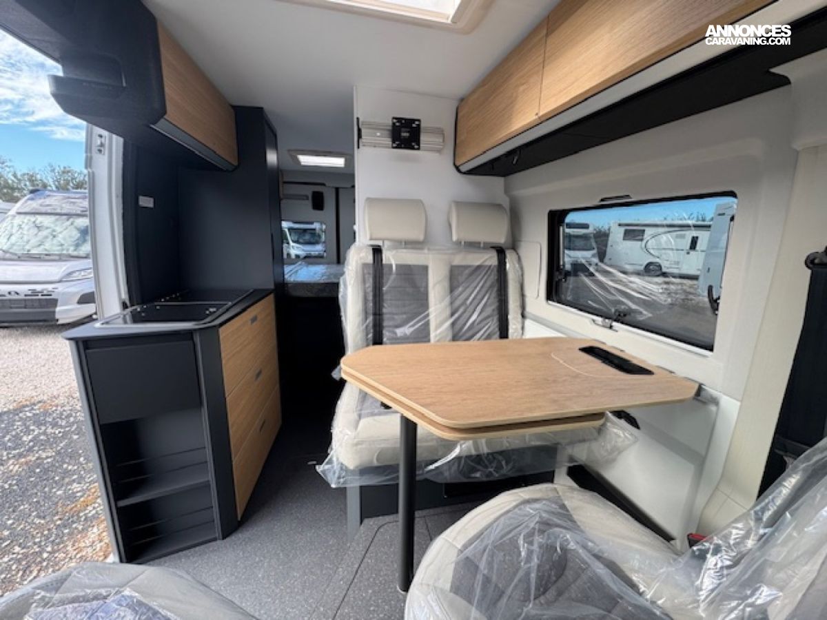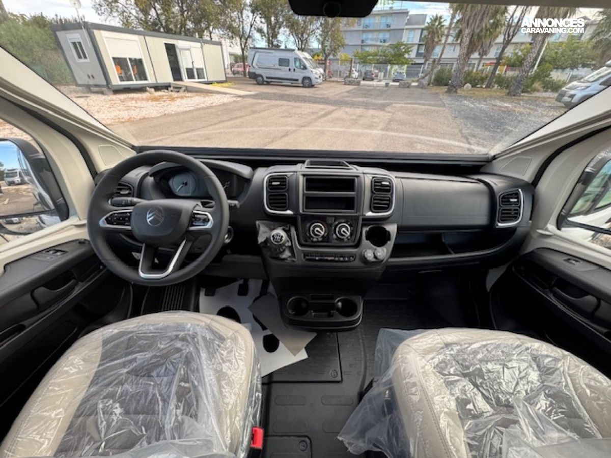 Toujours très équipé en série avec sa porte cellule avec moustiquaire, ses stores de cabine Remis, sa climatisation manuelle Citroën, ses baies affleurantes, ABS, double airbag, .... il saura satisfaire le client exigeant sur la qualité et l'équipement avec un chauffage/chauffe-eau au gaz Truma Combi 4.