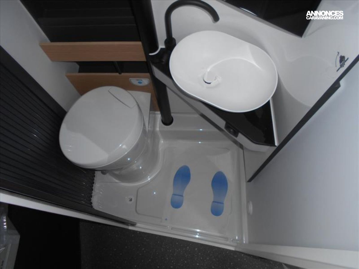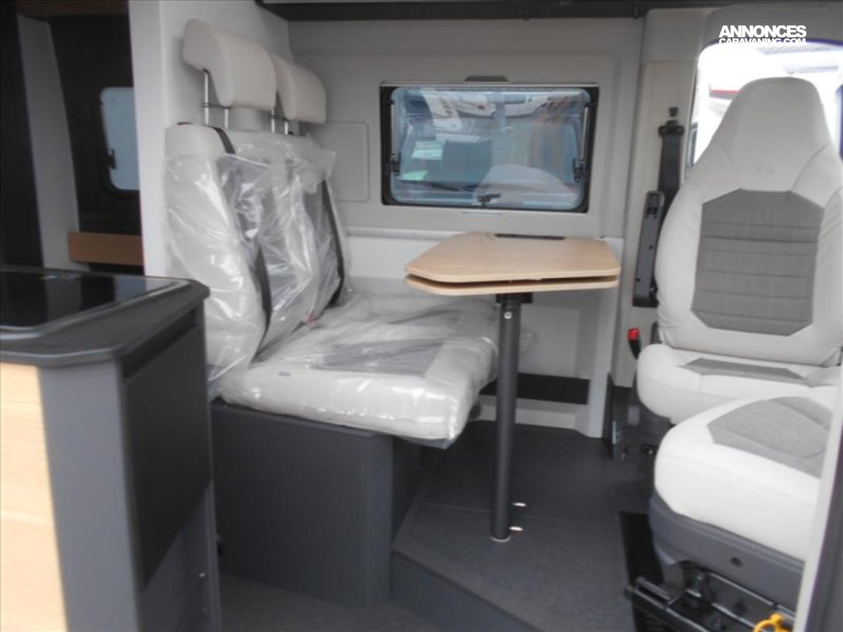 Airbag conducteur-passager, Climaitsation cabine manuelle, Reservoir carburant 90L, Rétroviseurs électrique et dégivrants, Sièges cabine ajustables en hauteur et profondeur, Ordinateur de bord, ABS-EBD, Vitre steintées, traction avant,, Porte cellule avec moustiquaire, baie latérale salle d'eau, Marchepied électrique, radar de recul, Coffre à gaz 1*13kg, Fixations ISOFIX pour siège enfant, Réchaud 2 feux CAN, allumage éléctrique avec protection, Réfrigérateur à compression 84L, WC cassette pivotant, bac à douche, Lavabo avec vasque rotative, Grande paroi pivotante pour séparation salle d'eau et douche, Pompe à eau immergée, Panneau de contrôle digital, Optimiseur de charge DC/DC, Éclairage LED extérieur, transformateur 220V/12V, Chauffage Webasto AIR TOP EVO 40 avec chauffe eau gaz Whale, Chauffage compartiment à bagages, Pré-équipement TV et caméra de recul, Antenne radio FM/AM DAB avec hauts parleurs