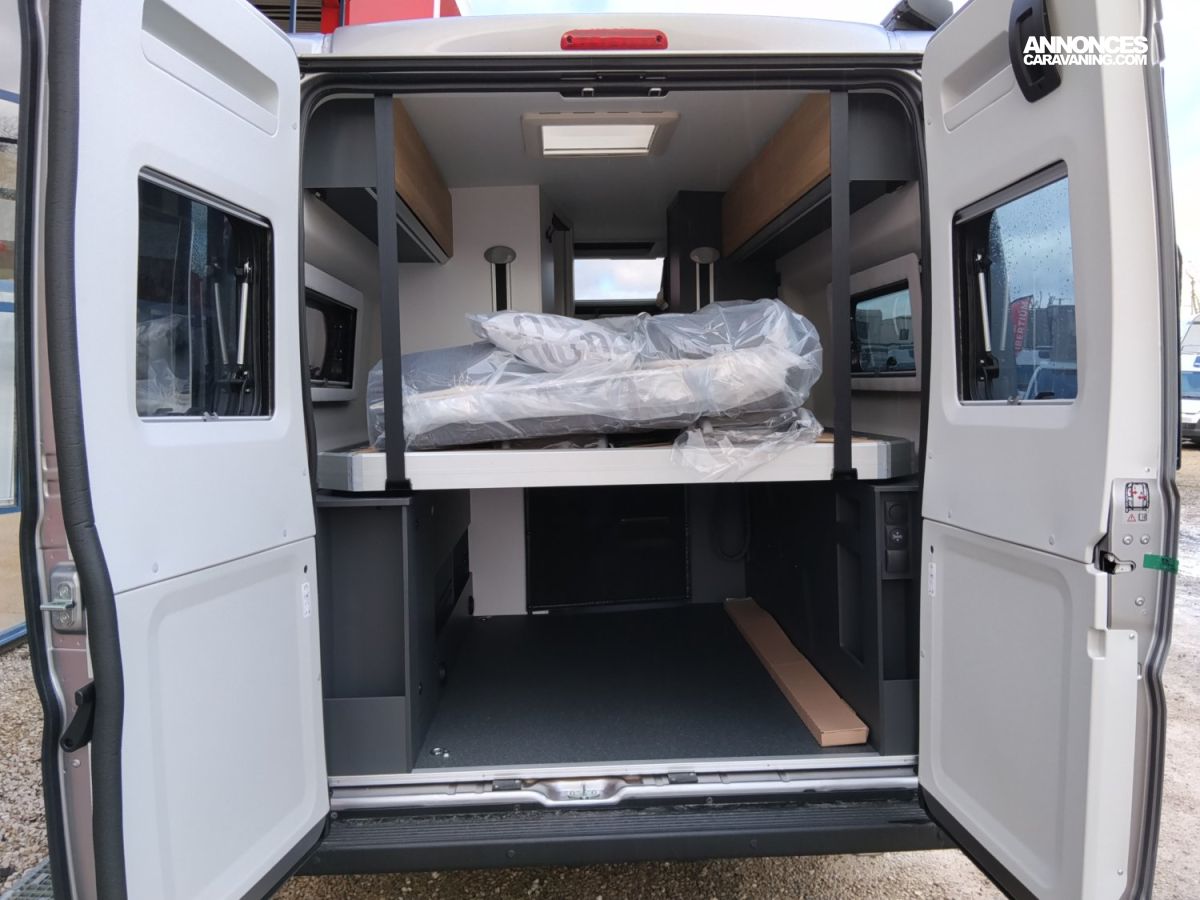 Radar de recul, Troisième feu stop, Lit avec sommier à lattes et matelas mousse haute densité, Double plancher dans l'espace dînette, FRIGO 84L, Fixations ISOFIX pour siège enfant, Vanne électrique de vidange des eaux usées, Logement pour batterie additionnelle, Chauffage Webasto AIR TOP EVO 40 avec chaue-eau gaz Whale, Pneumatique spécial Camping-car, Traction avant, Pack sièges pivotants + rangement sous sièges + Traction+, PACK Jantes alu 16'' Bi-color +Volant et levier vitesse cuir, Table dînette extensible noire+ porte gobelets indépendants, Isolation thermique premium totale du véhicule de base, Pré-installation pour climatisation cellule, Régulateur de gaz Truma MonoControl CS 30 mbar GV, Pré-équipement TV (220 V, 2x12 V, raccord antenne), Toit relevable gris