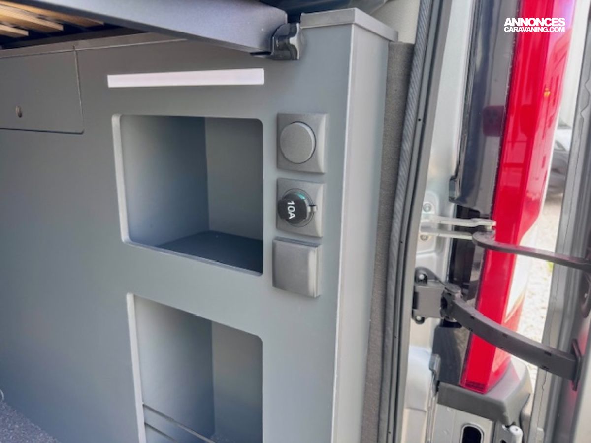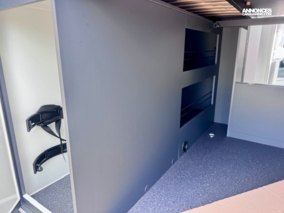 Toujours très équipé en série avec sa porte cellule avec moustiquaire, ses stores de cabine Remis, sa climatisation manuelle Fiat, ses baies fumées affleurantes, ABS, double airbag, .... il saura satisfaire le client exigeant sur la qualité et l'équipement avec un chauffage/chauffe-eau au gaz Truma Combi 4.