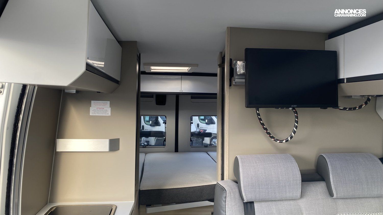 Airbags conducteur et passager, Antibrouillard arrière, Climatisation cabine manuelle, Régulateur et limiteur de vitesse, Rétroviseurs électriques et dégivrants, Store d'occultation fenêtres latérales, Store d'occultation pare brise, Chauffage/chauffe eau Truma 4000, Carrosserie blanche, Marche pied électrique, ABS + EBD, Tableau de bord version luxe, Feux halogènes de jour, Lanterneau 400 X 400 mm, chambre, Pare chocs blanc, Porte cellule avec moustiquaire, Coffre à gaz 2 X 13 kg, ESP, Lanterneau 700 X 500mm,salon, Panneau de contrôle chauffage digital, Radar de recul, Roue de secours