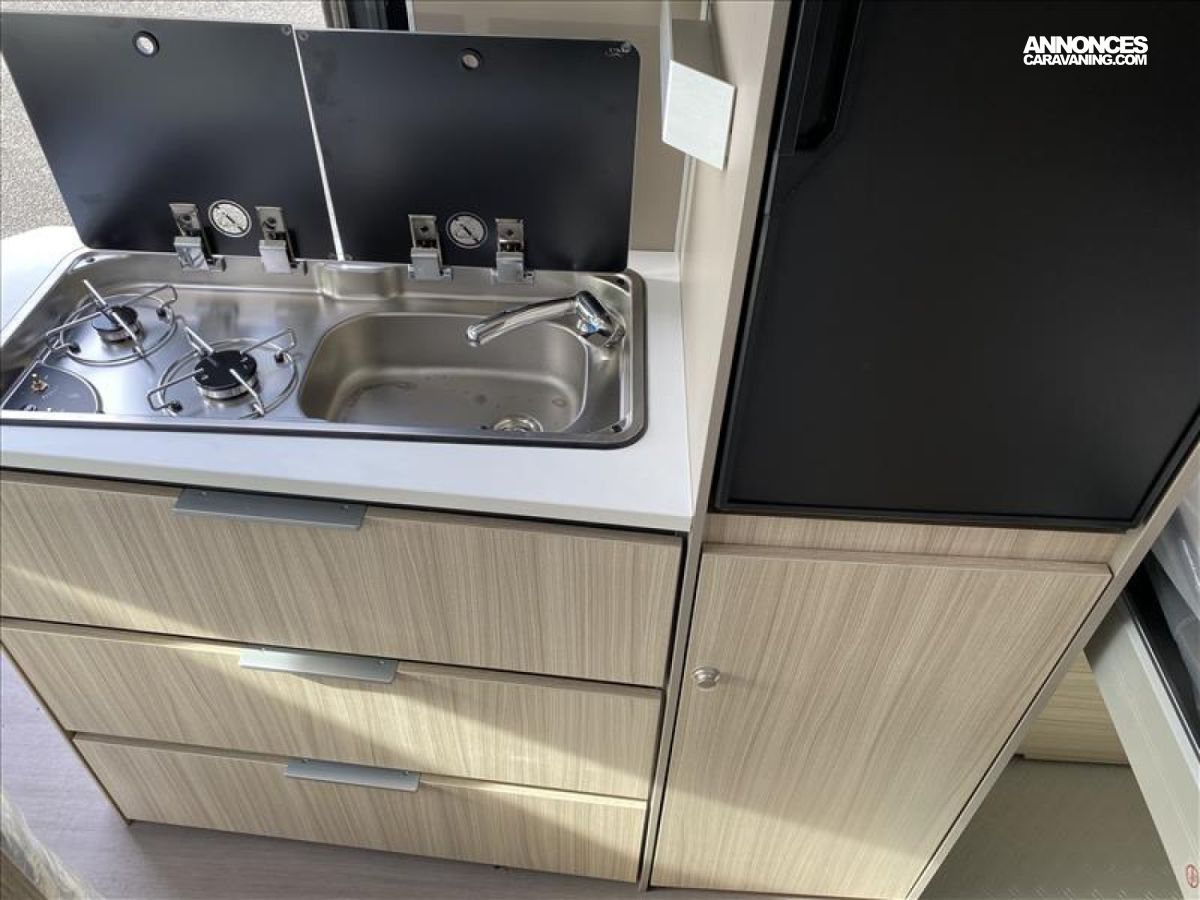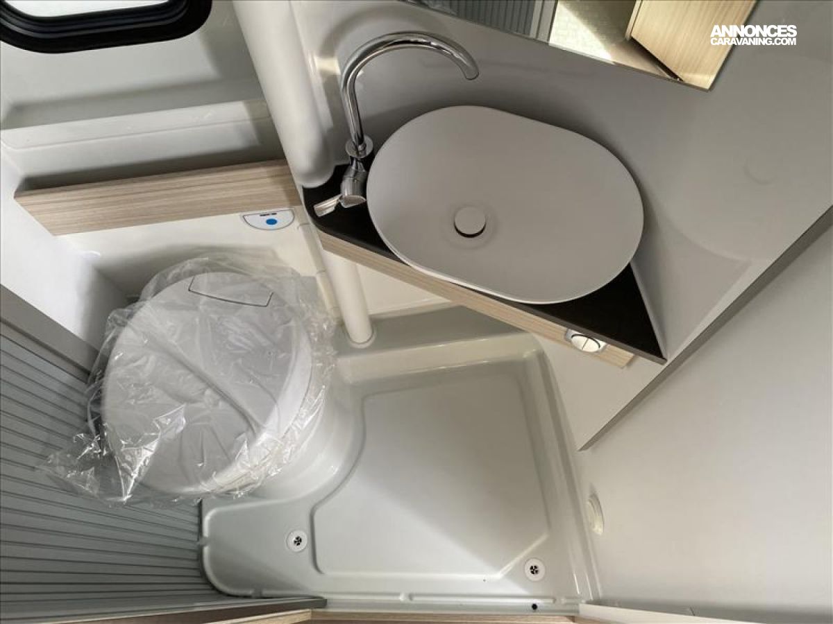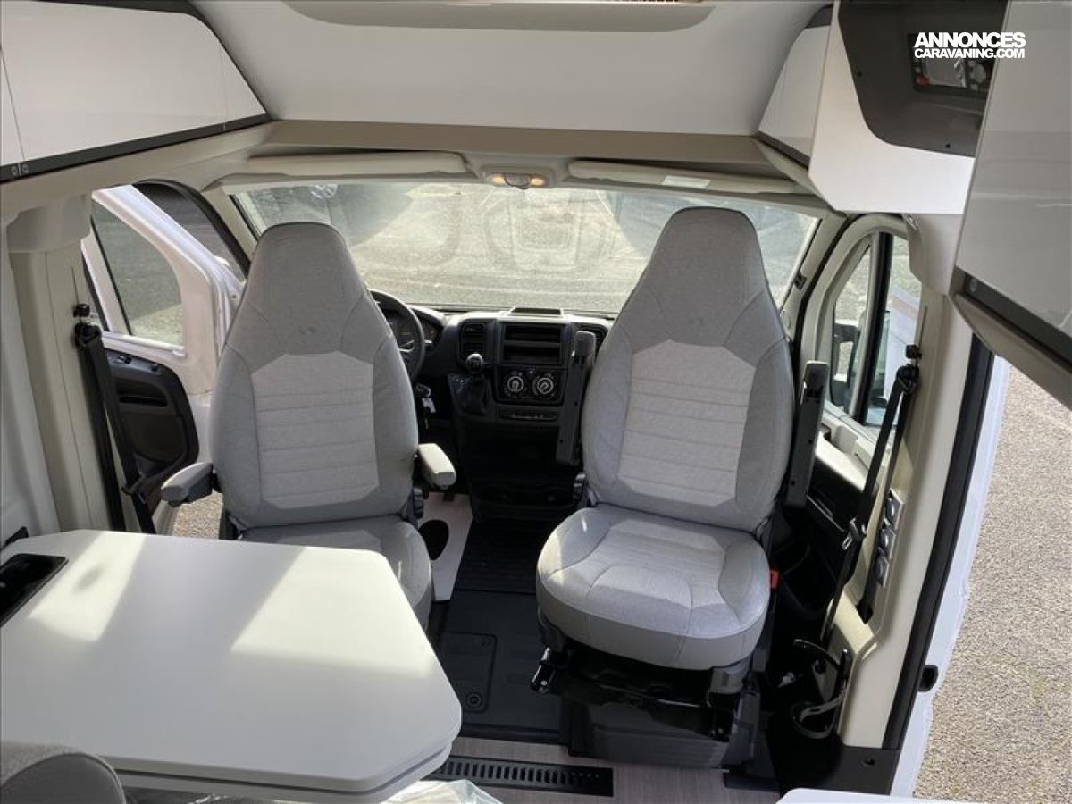 ABS + EBD, Airbag conducteur et passager, Porte cellule avec moustiquaire, Climatisation cabine manuelle, Lit de pavillon, Radar de recul, Chauffage Webasto AIR TOP EVO 40 avec chauffe-eau gaz Whale, Store d'occultation pare-brise, Antenne radio FM/AM + DAB avec haut-parleurs, Rétroviseurs électriques et dégivrants