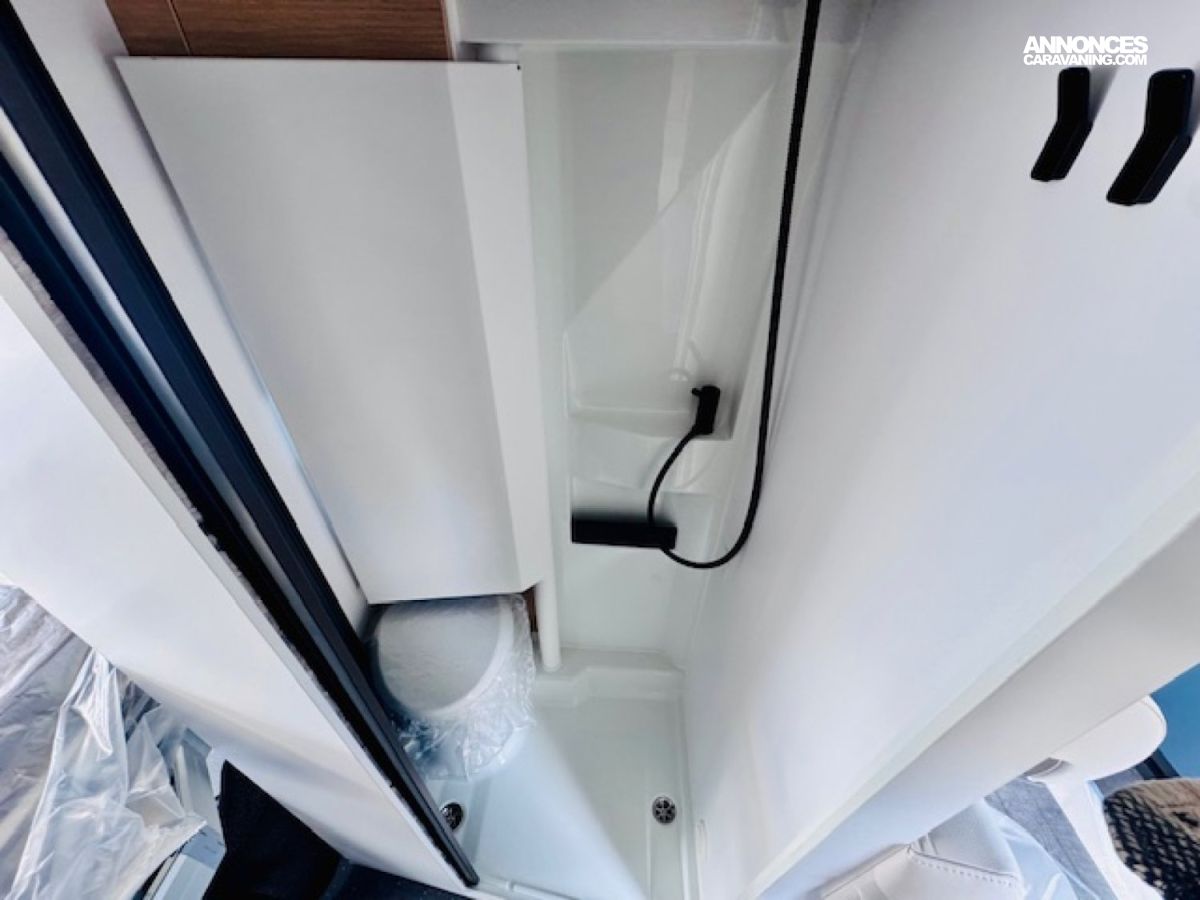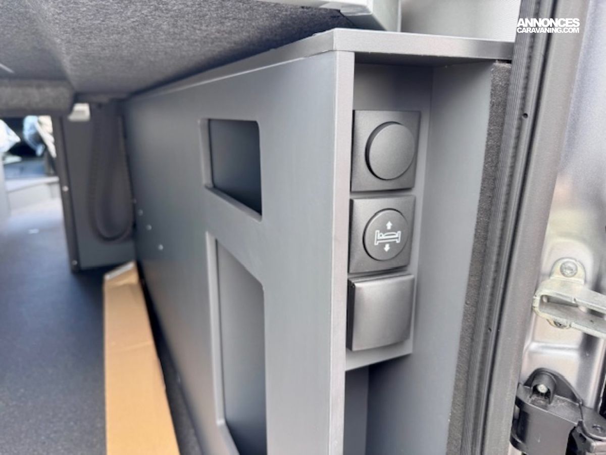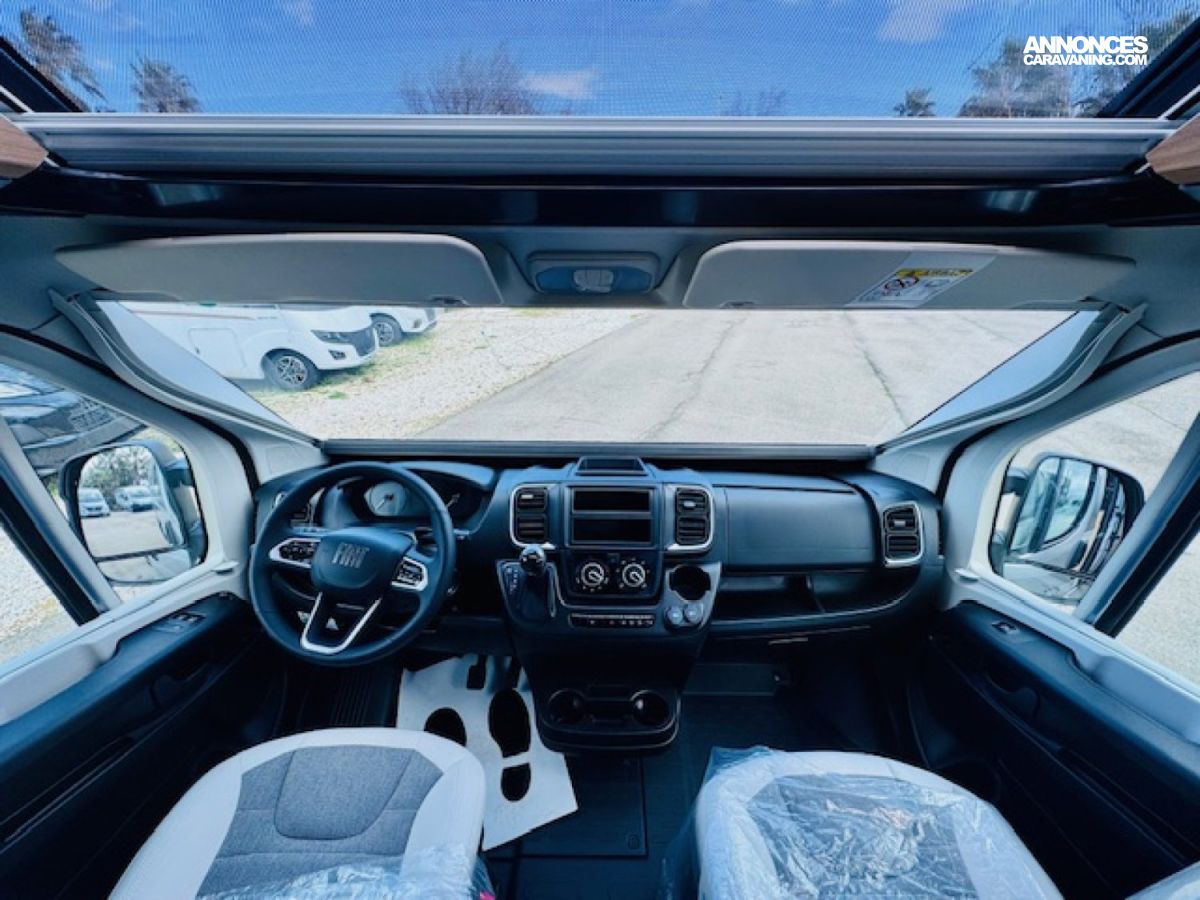 Toujours très équipé en série avec sa porte cellule avec moustiquaire, ses stores de cabine Remis, sa climatisation manuelle Fiat, ses baies affleurantes, ABS, double airbag, .... il saura satisfaire le client exigeant sur la qualité et l'équipement avec un chauffage diesel Webasto AIR TOP EVO 40 et un chauffe-eau au gaz Whale.