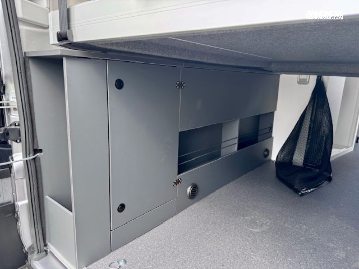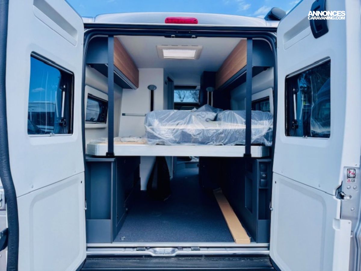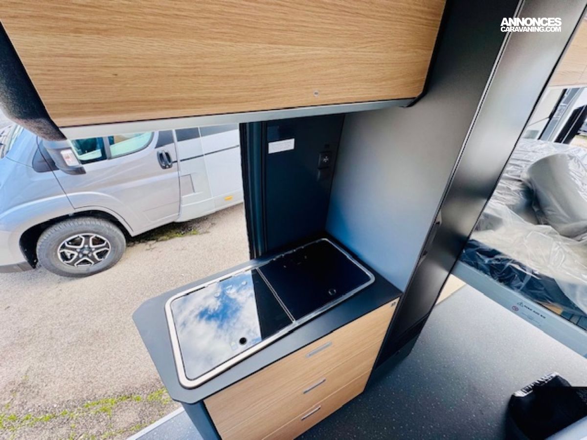 Toujours très équipé en série avec sa porte cellule avec moustiquaire, ses stores de cabine Remis, sa climatisation manuelle Fiat, ses baies affleurantes, ABS, double airbag, .... il saura satisfaire le client exigeant sur la qualité et l'équipement avec un chauffage diesel Webasto AIR TOP EVO 40 et un chauffe-eau au gaz Whale.