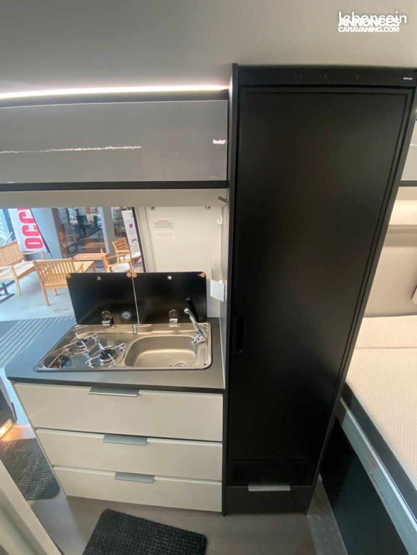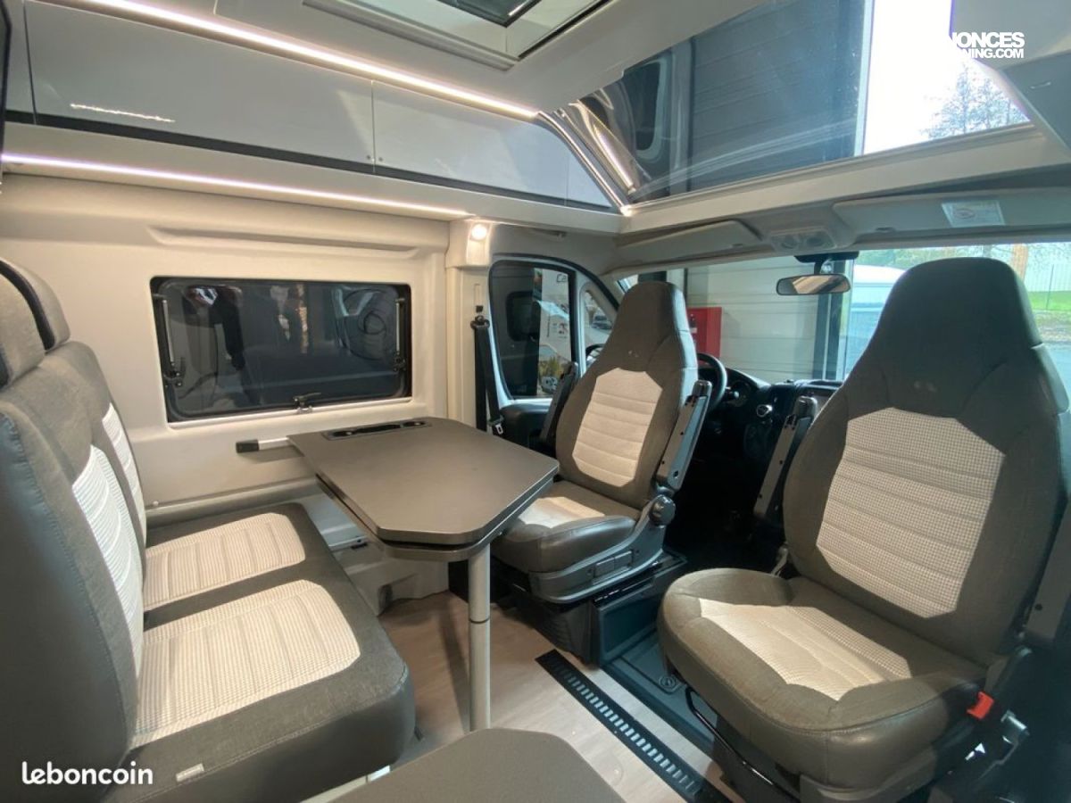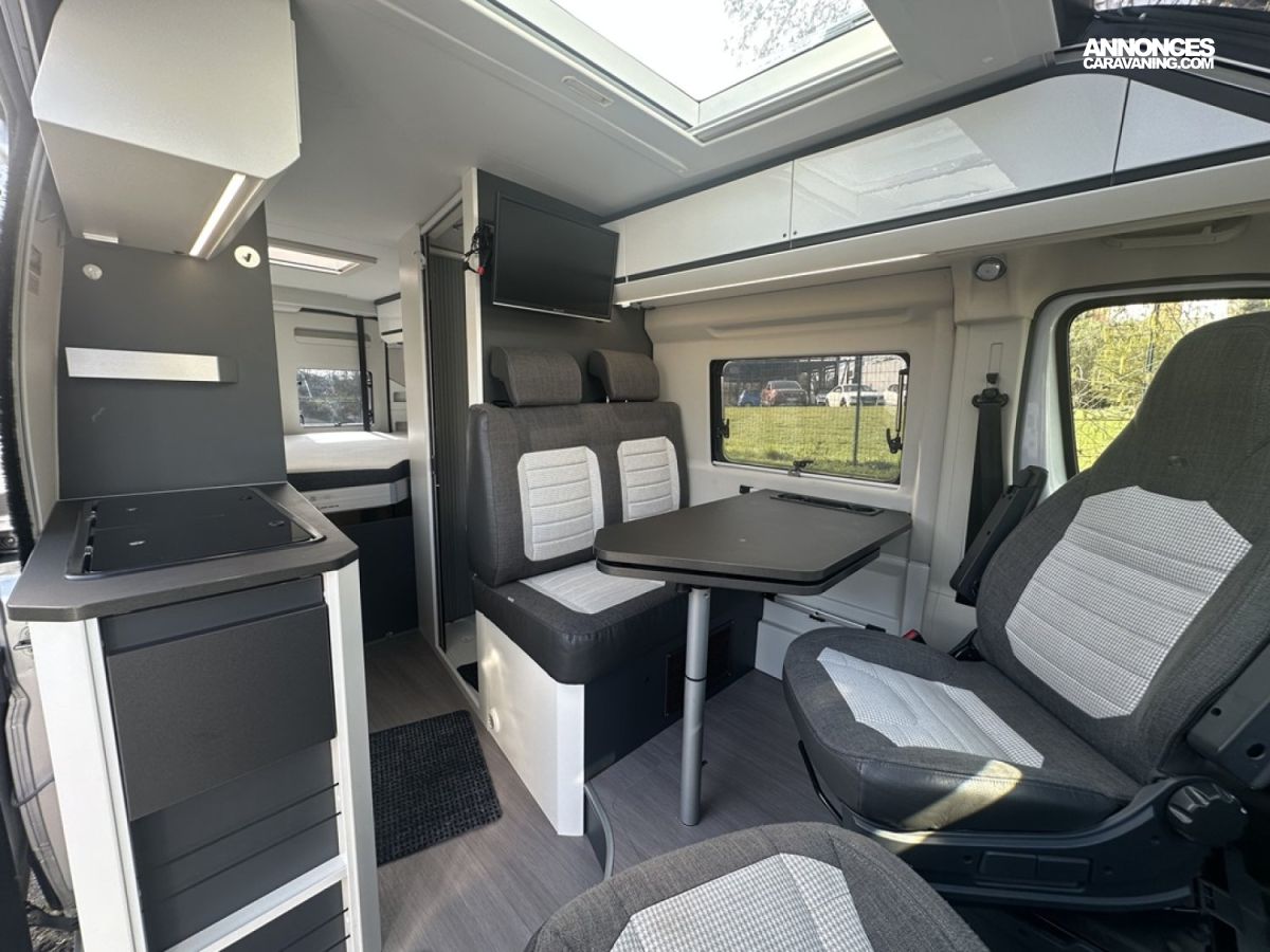 À bord, on retrouve un lit arrière électrique ajustable, une cuisine moderne bien équipée, une salle d’eau modulable et de nombreux rangements intelligents. La finition Supreme se distingue par ses matériaux raffinés et ses équipements complets pour voyager confortablement toute l’année.
