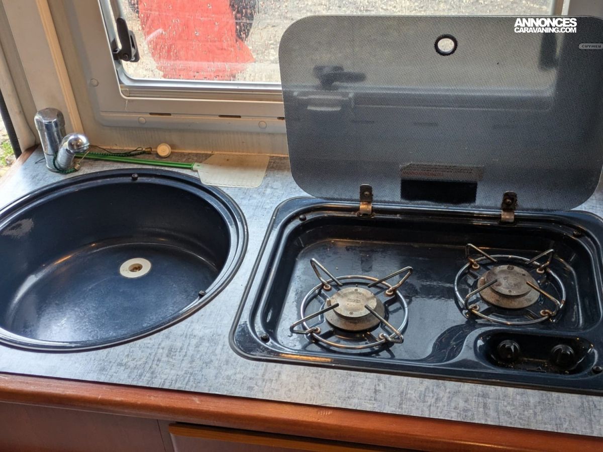 GAZINIERE 2 FEUX, FENETRE SDB, HOTTE ASPIRANTE, PORTE VELO, REFRIGERATEUR TRI MIX, CHAUFFAGE GAZ TRUMATIC, STORE EXTERIEUR 6M, SALON EN U