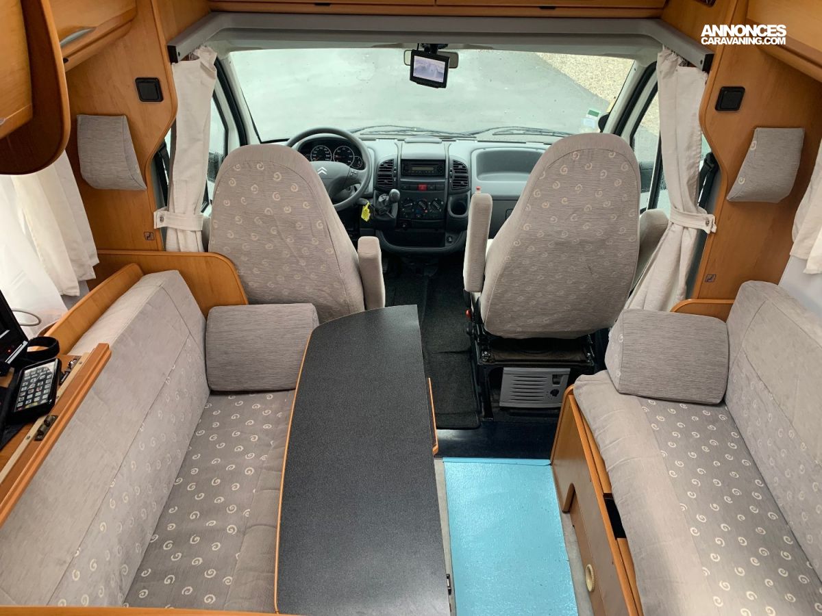 Implantation intérieure : à la française (lit permanent à l’arrière, salon à l’avant)