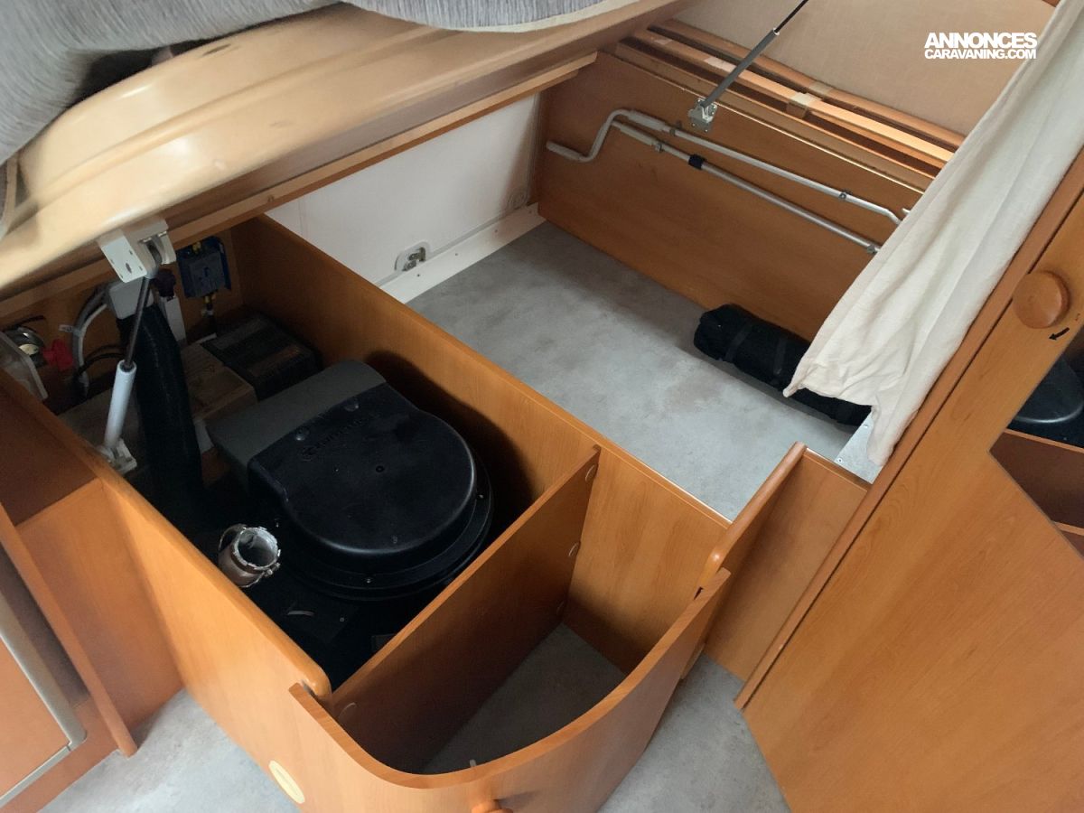 Lit permanent longitudinal à l’arrière (type « à la française »), confortable pour deux adultes.