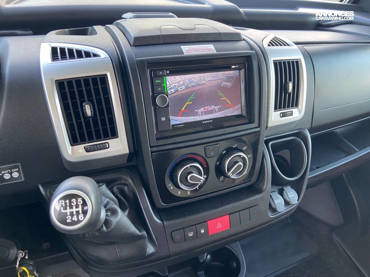 CAMERA DE RECUL, AUTORADIO DOUBLE DIN, MOUSTIQUAIRE DE PORTE, FERMETURE CENTRALISEE, HOTTE ASPIRANTE, PORTE-VELOS, STORE EXTERIEUR, 2 PANNEAUX SOLAIRES, REGULATEUR ET LIMITEUR DE VITESSE, ANTENNE PARABOLE, 2 TV, CLIMATISATION 220V, CONVERTISSEUR 2000W, 2 BATTERIES LITHIUM 150 Ah