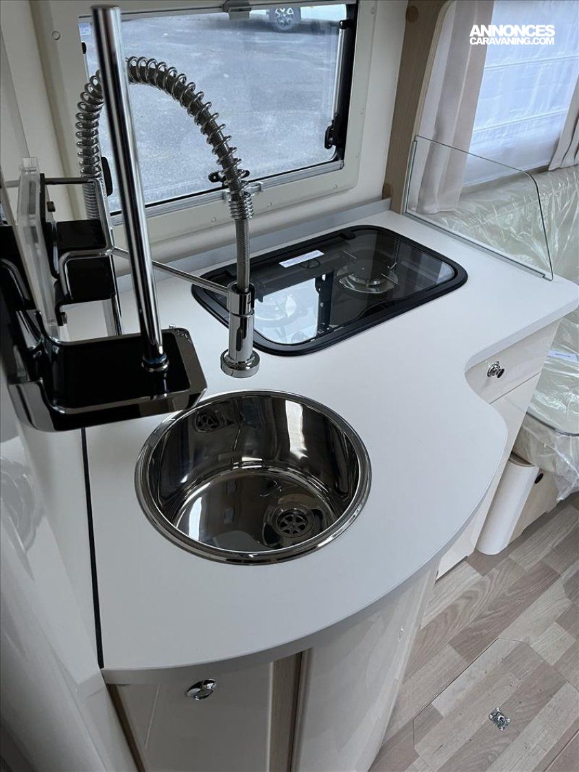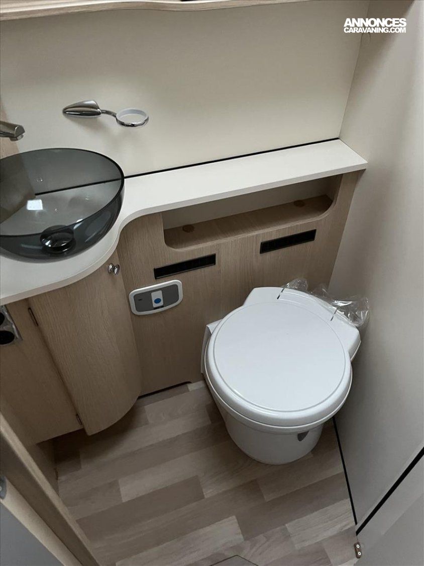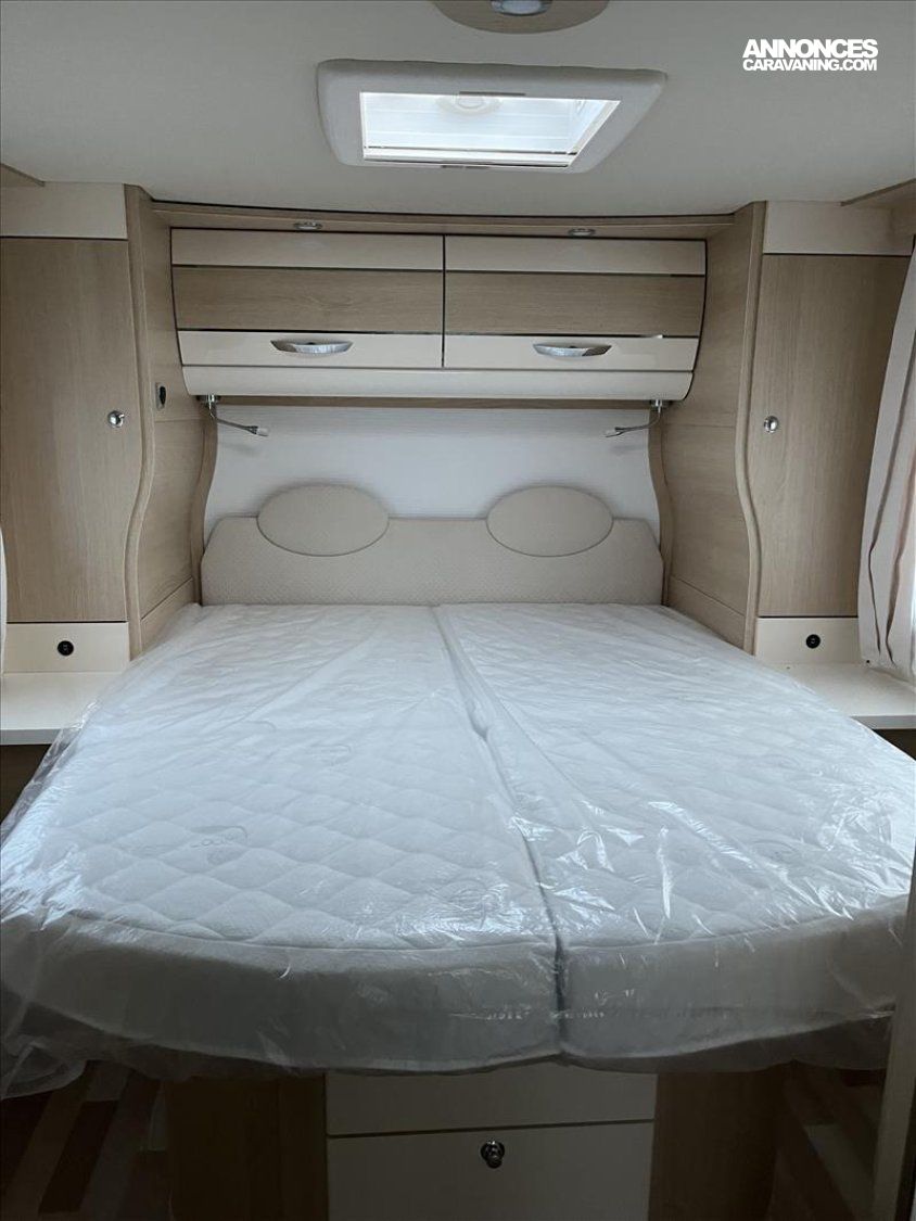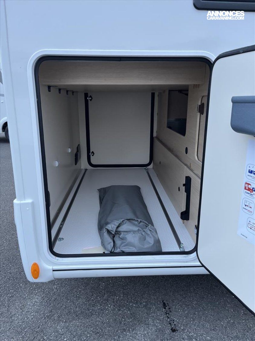 ABS, Emplacement 2eme cassette WC, Pré-équipement TV en chambre, Grand lanterneau de toit, Hotte aspirante, Lit central extre large, Réfrigérateur 175L AES, Réservoir EU isolé é chauffé, Réchaud 2 grand feux avec battant, Chauffage air pulsé TRUMA 6000, Tableau de commandes CPPLUS