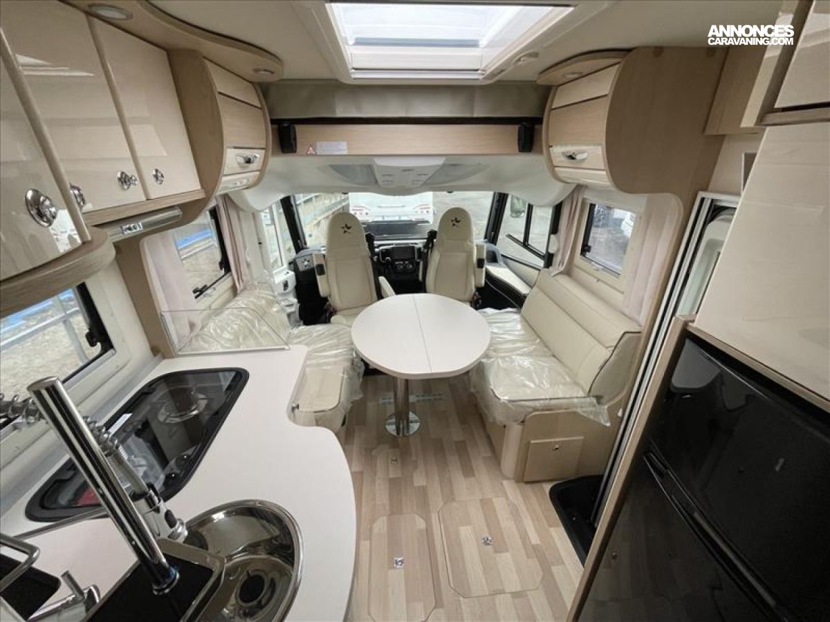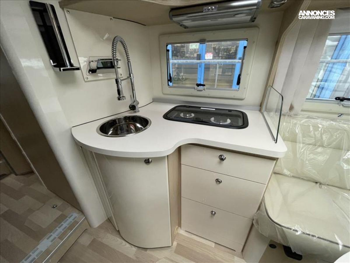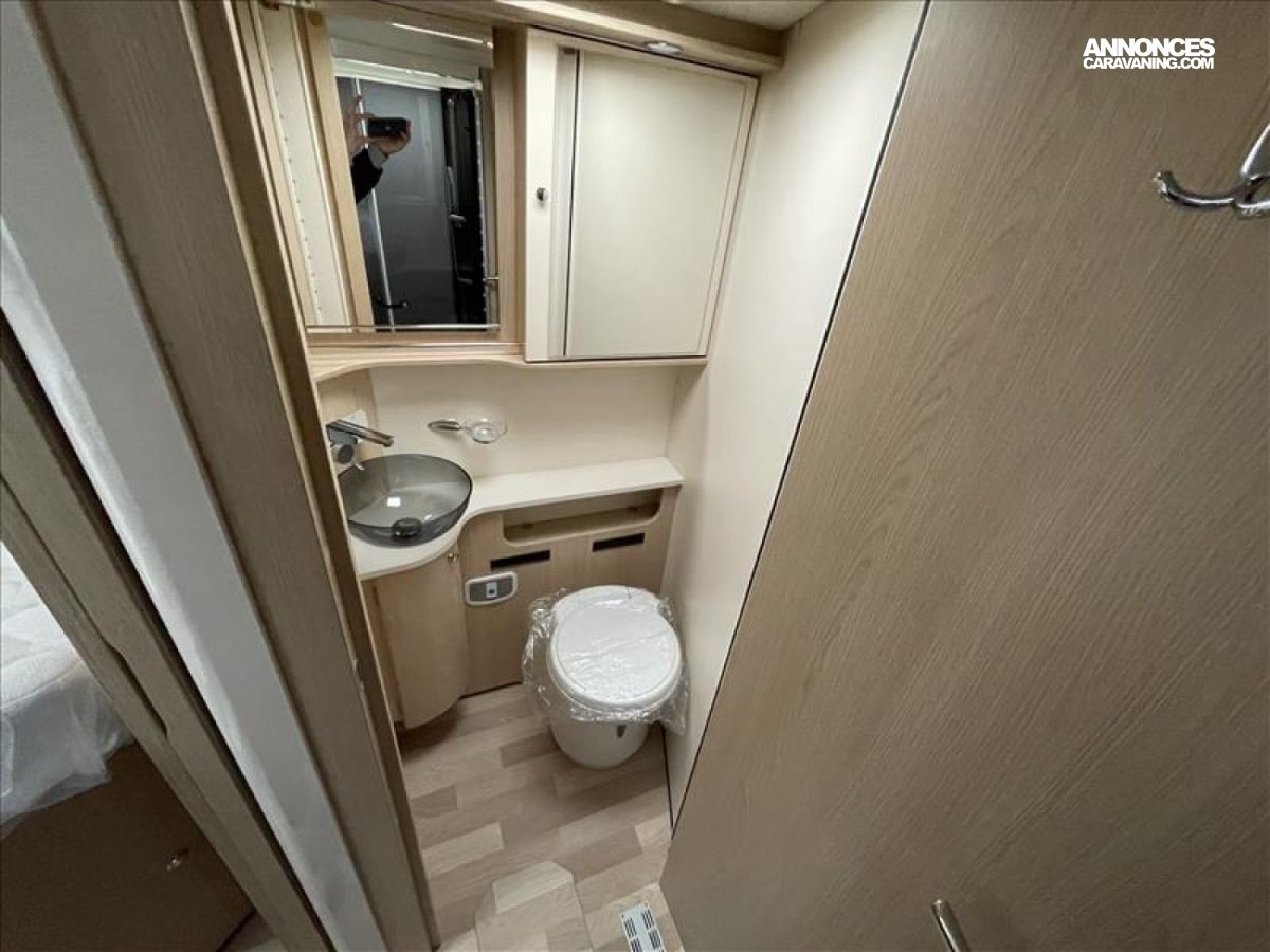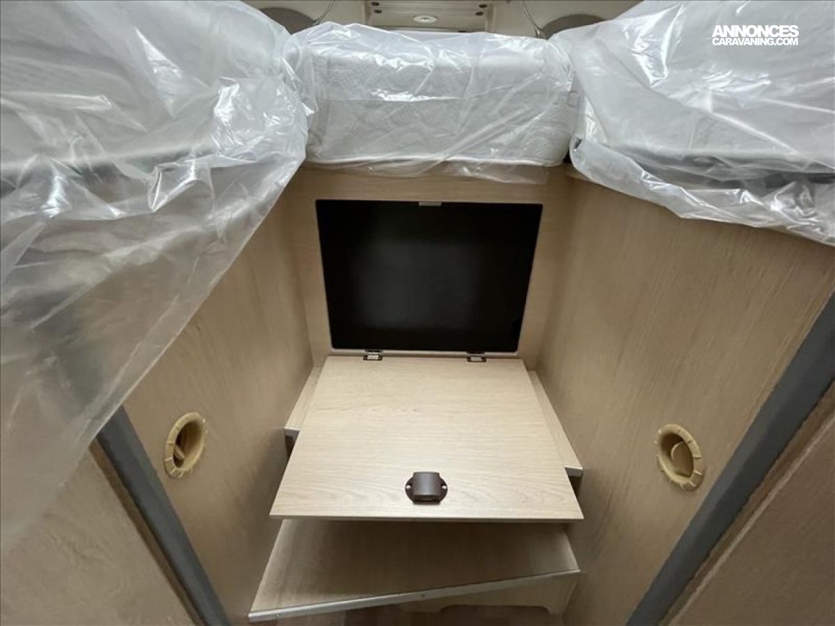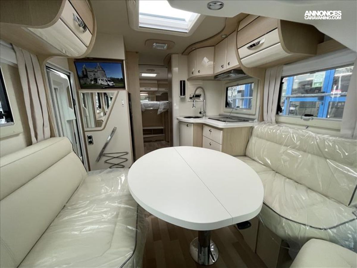 Lit pavillon 140 x 190, Double plancher rangement, Isolation phonique performante, Modèle chaudière Truma 6000E, 4 sièges automobile et ISOFIX, Dimensions soute maxi L 2174 x l 1170 x h 1300, Volume réservoir carburant 90L, Régulateur de vitesse et limiteur de vitesse, Chassis ALKO, Salon face face, WC séparé, Double cloisonnement, Jantes alliage 16 pouces