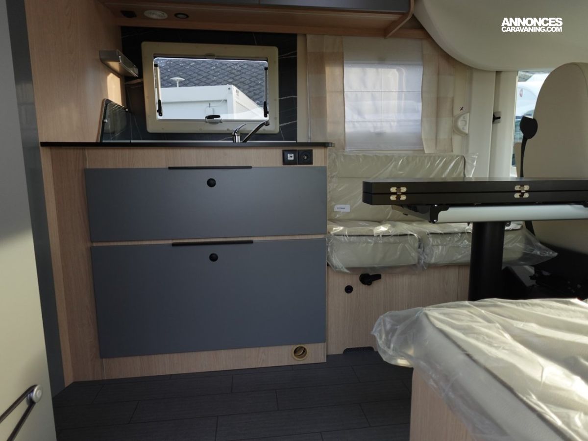 Pas de limites dans cet intégral conçu pour maximiser votre confort. À l’intérieur de cette véritable maison sur roues, vous voyagez sereinement tout en conservant vos habitudes. Recevoir des amis dans ce beau salon. Profitez des moments de partage avec vos convives, tout en leur mijotant de bons petits plats dans cette belle cuisine droite, ouverte sur le salon face-face. Et le soir venu, vous apprécierez le confort du lit central XXL dans l’espace nuit… Alors, laissez-vous embarquer dans la plus sécurisante des aventures.
