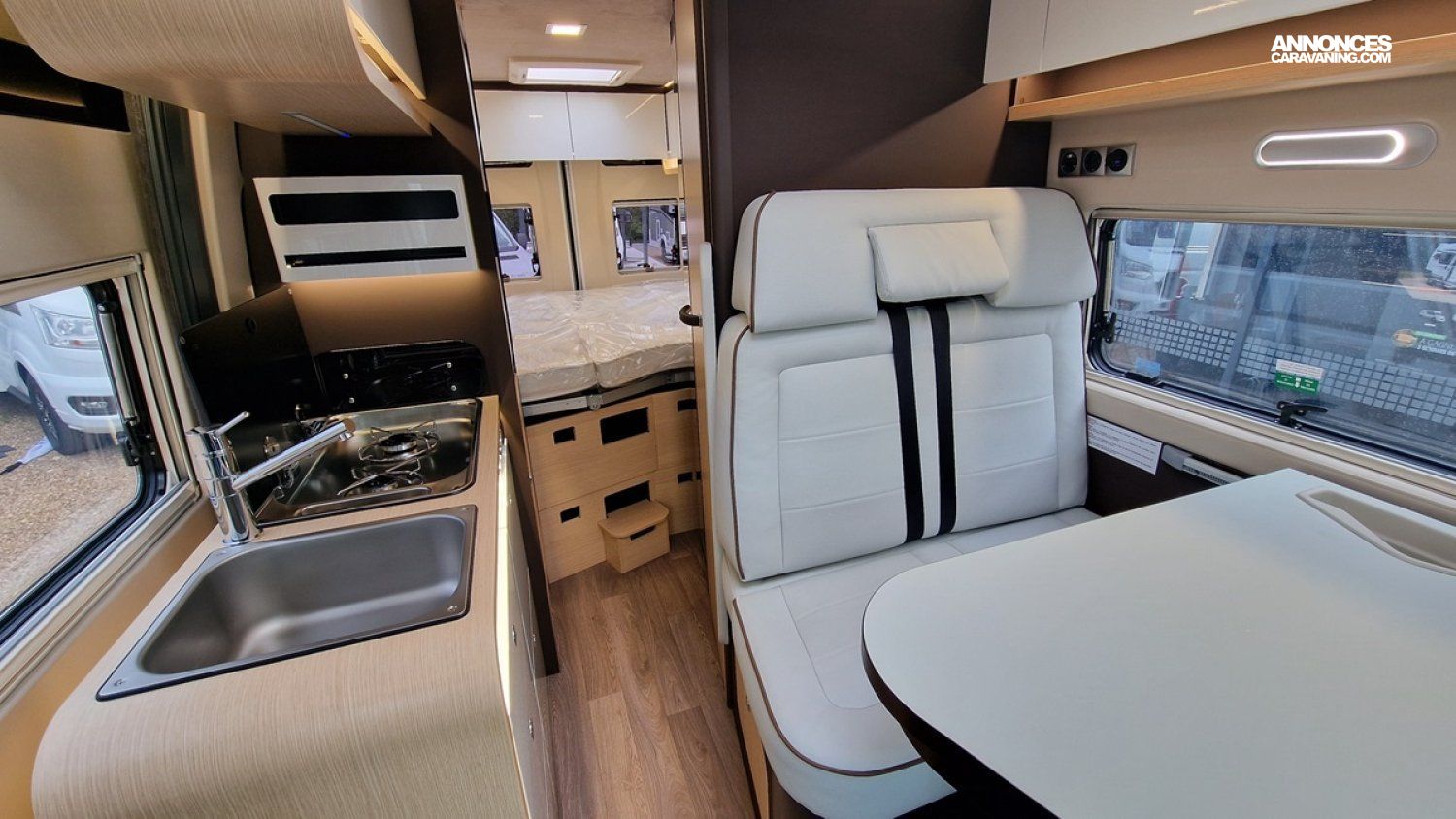 Il dispose de tout le nécessaire pour voyage sereinement : couchage, coin cuisine, rangements et autonomie pour plusieurs jours.