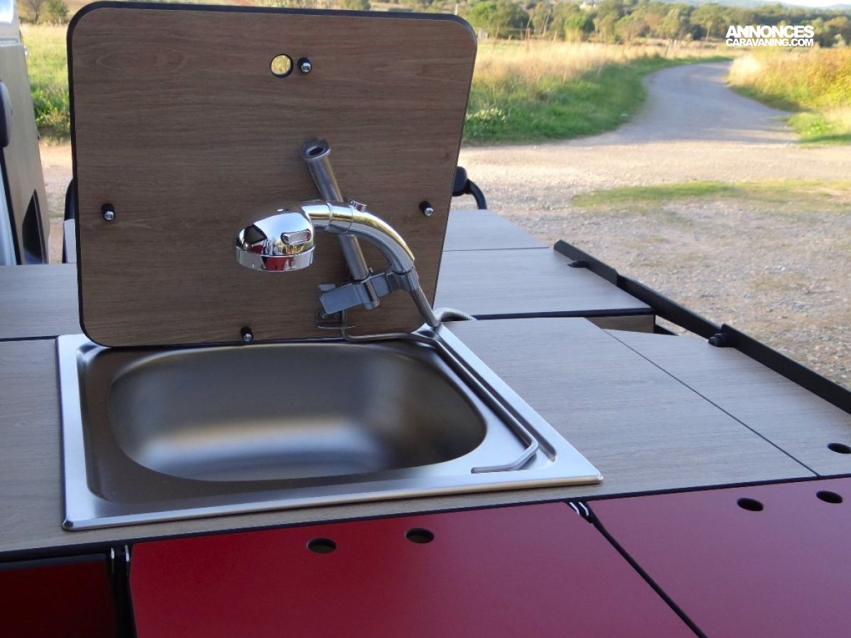 3 points d’eau : évier, lavabo, douche, 59 litres