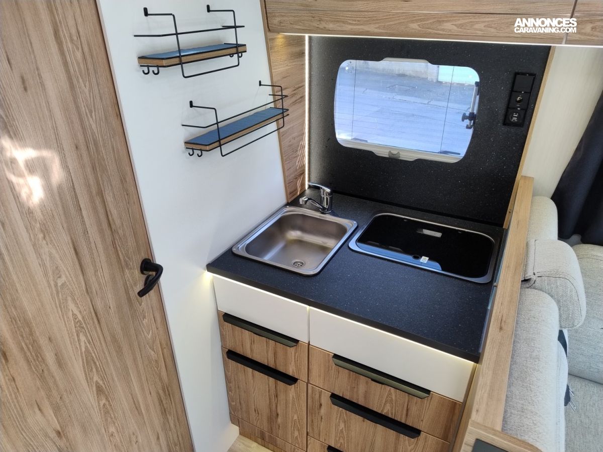 Au-delà de son look et de la luminosité intérieur omniprésente ce modèle sera vous séduire aussi grâce à sa grande soute traversante pour embarquer aisément tous vos équipements et aux multiples rangements à disposition dans l’espace de vie.