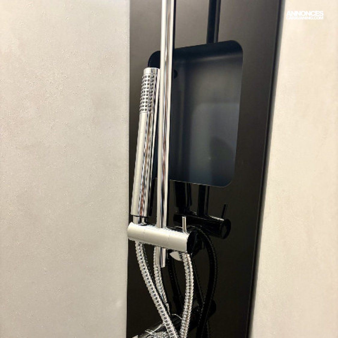 AUTORADIO 9'' + GPS + CAMERA DE RECUL, BATTERIE LITHIUM + 2 PANNEAUX SOLAIRES, CAILLEBOTIS DANS LA DOUCHE, CONVERTISSEUR 2000W, DOUCHETTE EXTERIEURE, ECLAIRAGE + PRISE 230V + RAIL EN SOUTE, ECLAIRAGE PENDERIE, ECLAIRAGE SOUTE, POUBELLE INTEGREE, PRISE 230V EN SOUTE, TIROIR BAS DE CAISSE, TRUMA COMBI DIESEL