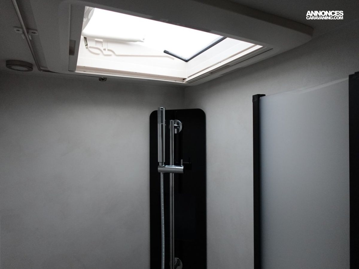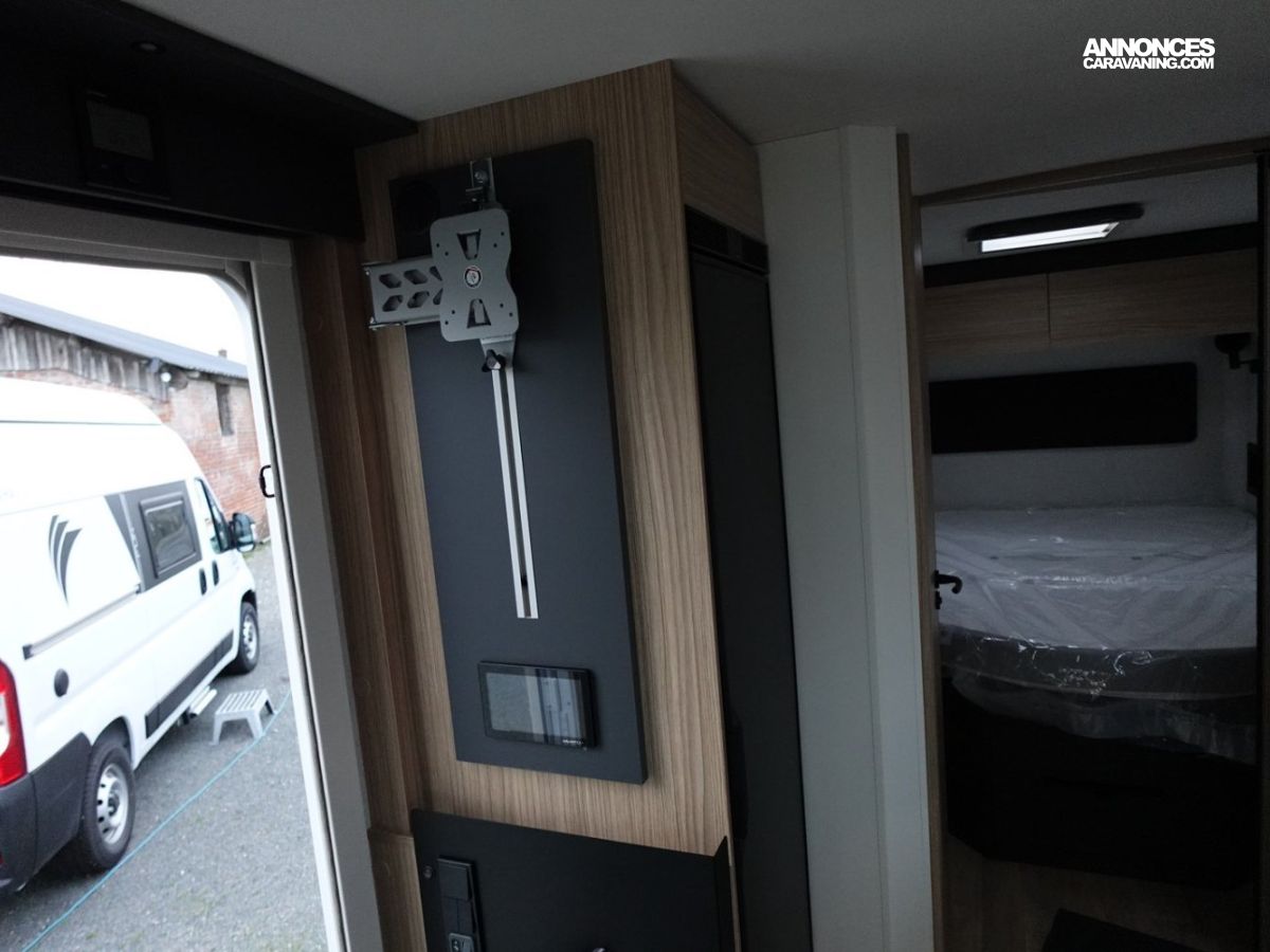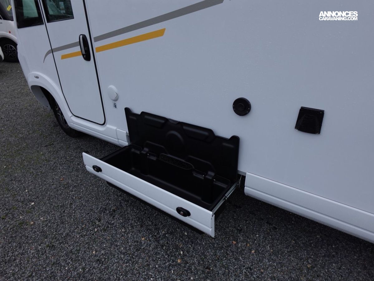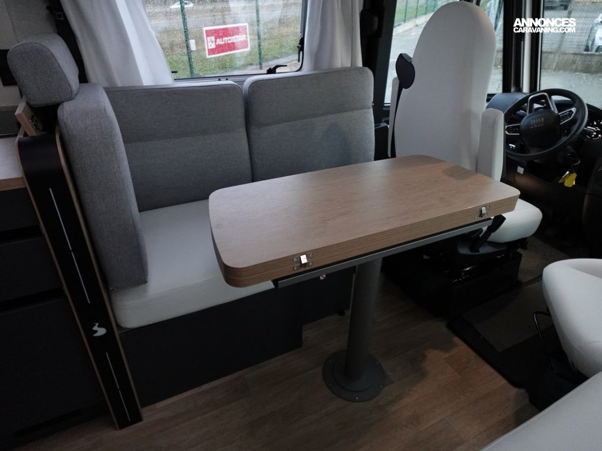 (Motorisation 140 CV, Boite automatique, Batterie Lithium 200 Ah, Convertisseur pur sinus 2000 W, 2 Panneaux solaire 100 W haute performance, Booster pour une charge rapide de la batterie, Chauffage hybride Truma D 6 E, Tiroir bas de caisse, Douchette eau froide/eau chaude dans la soute arrière, Eclairage + rails d’arrimage + prise 220 V dans la soute, Porte serviettes repliable, Poubelle et accessoires pour compartimenter, Eclairage dans la penderie de la chambre, Sellerie bi-ton et bi-matière simili et tissu Sand, Ambiance Pyla)