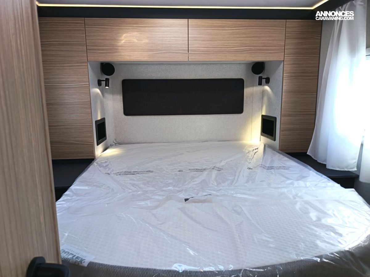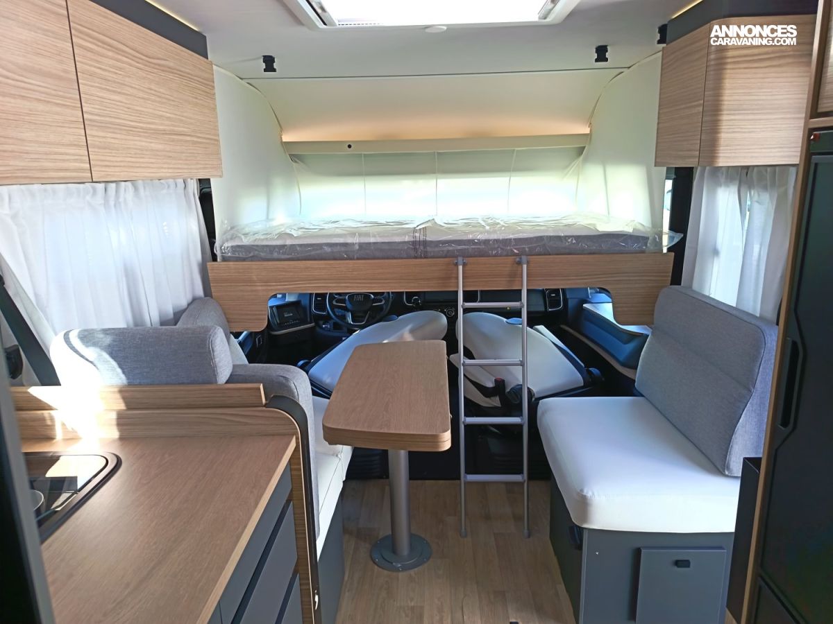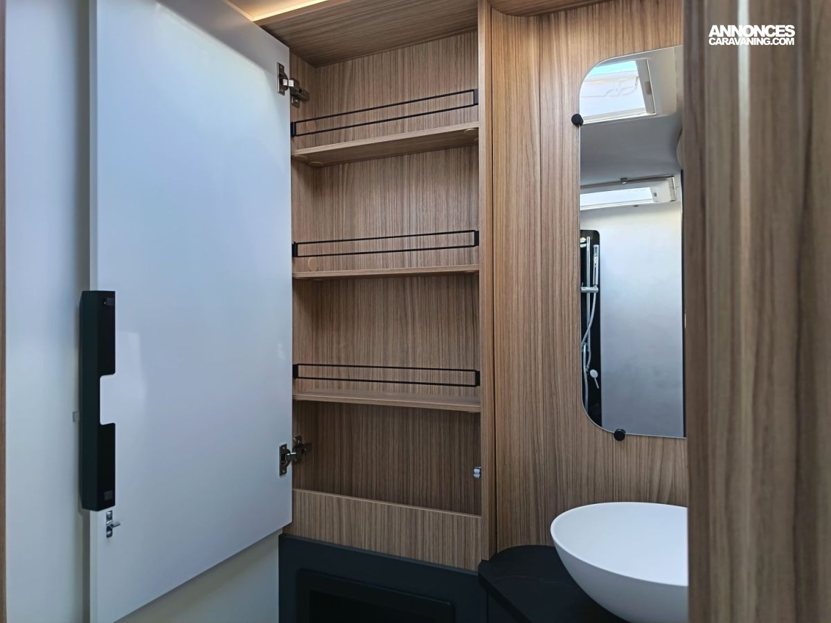 CONVERTISSEUR 2000W, DOUCHETTE EXTERIEURE, AUTORADIO 9 GPS + CAMERA, BATTERIE LITHIUM 200 AH, RESERVOIR DIESEL 90L, TIROIR BAS DE CAISSE, PORTE SERVIETTE REPLIABLE, 2 PANNEAUX SOLAIRES 100W, CAILLEBOTIS DOUCHE, POUBELLE INTEGREE, RAIL DE SOUTE, COMBI TRUMA 6 EH, ECLAIRAGE DE SOUTE