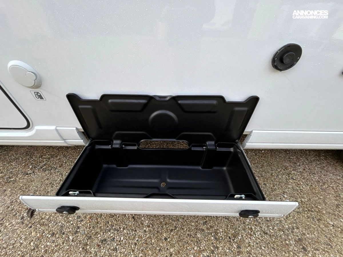 Éclairage, rails d’arrimage et prise 230 V en soute.