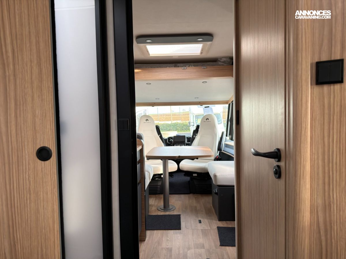 Le Bavaria I740FC Nomade est un intégral haut de gamme de 7,49 m, prêt à partir, qui mise sur le confort d’un grand lit central et une vraie autonomie pour voyager partout à deux ou en famille. Il reste sous les 3,5 t, donc accessible au permis B, tout en offrant 4 places carte grise et 4 couchages dans un intérieur moderne et très bien équipé.