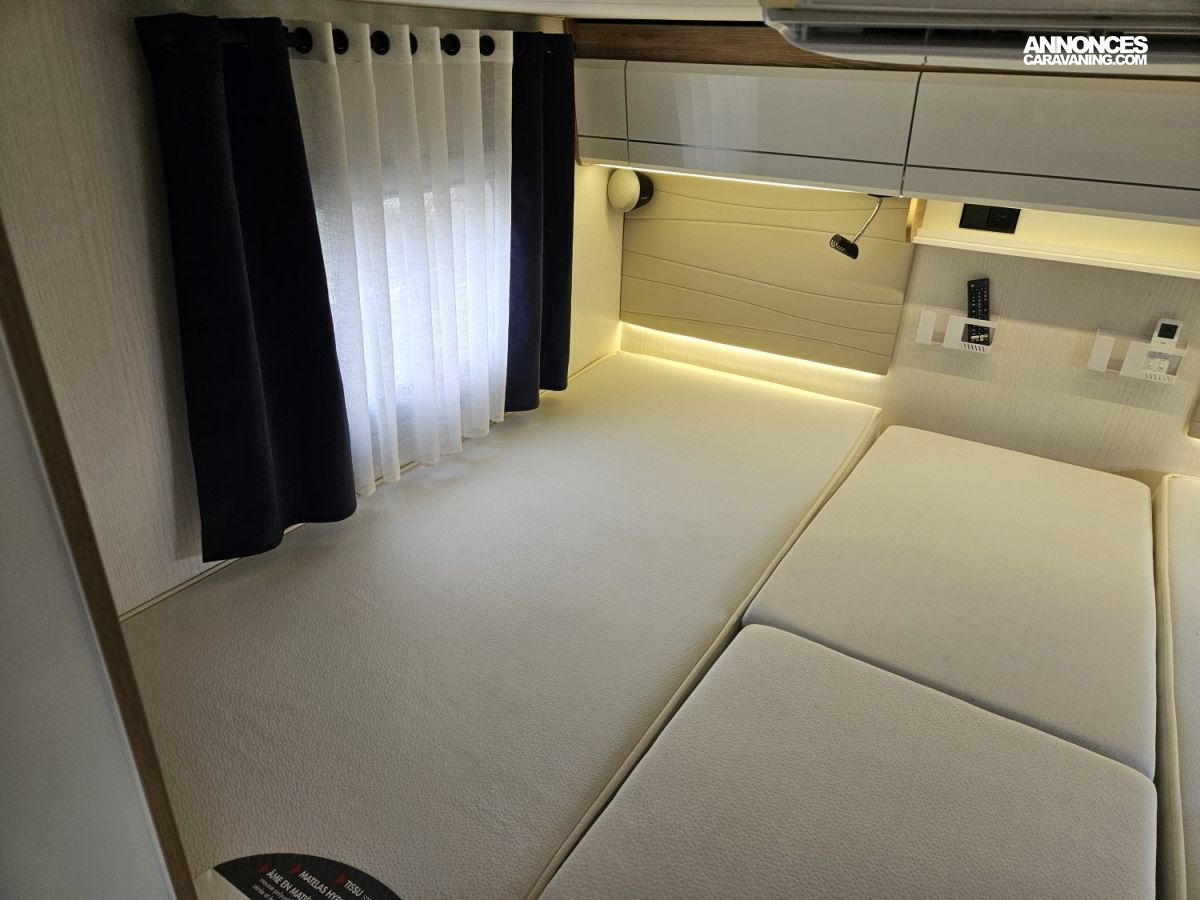 CHAUFFAGE COMBI TRUMA 6, REFRIGERATEUR/CONGELATEUR, STORE EXTERIEUR 4.5M, CLIMATISATION CELLULE 220V, GAZINIERE 2 FEUX, FENETRE SDB, DOUCHETTE DANS SOUTE, DOUCHE ET WC SEPARES, ECLAIRAGE LED, MOQUETTE CABINE, MOUSTIQUAIRE DE PORTE CELLULE, REFRIGERATEUR TRI MIX, SERRURES SUPPLEMENTAIRES, STORES PLISSES DE CABINE, DOUBLE CLOISON DE SEPARATION, REFRIGERATEUR 177L, RESERVOIR EAUX USEES HORS GEL, LANTERNEAU PANORAMIQUE, CLIMATISATION CELLULE REVERSIBLE, DOUCHETTE EXTERIEURE EAU CHAUDE ET FROIDE, SALON EN U, CHAUFFE-EAU GAZ