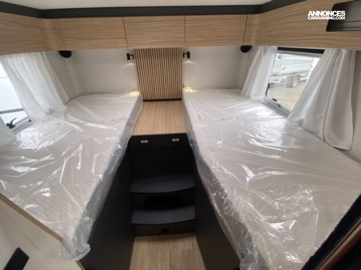 Lits jumeaux sur soute garage : espace nuit spacieux avec grand volume de rangement en dessous