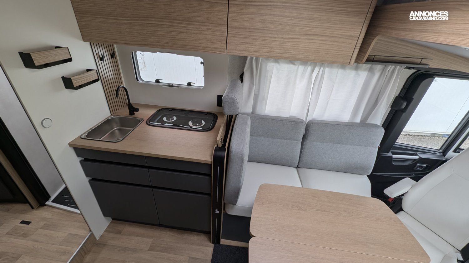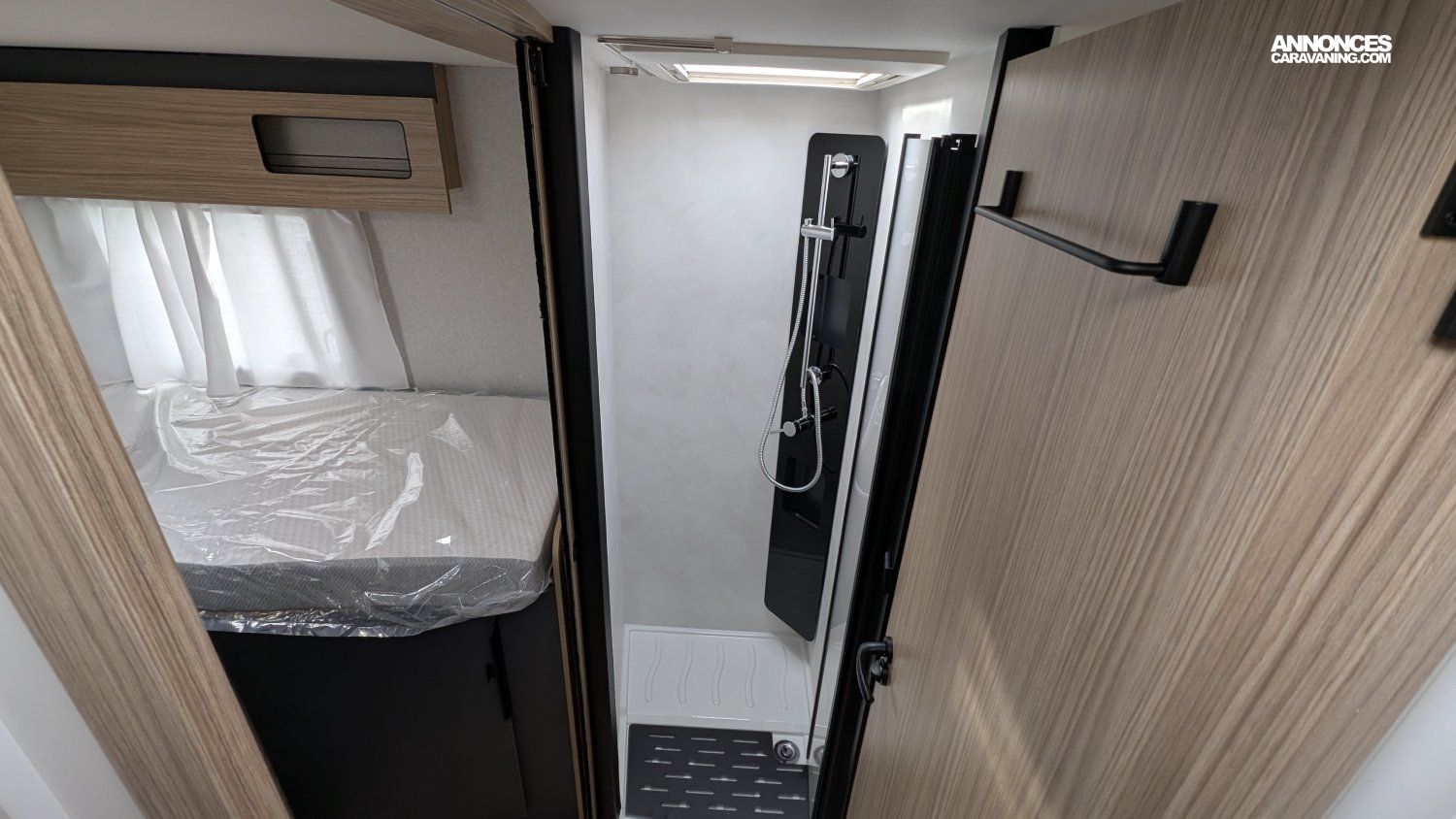 Moquette en cabine, Store exterieur, Occulation en cabine, Batterie lithium 200A + 2 Panneaux solaire mono 100W, Douche extérieure, Poubelle intégrée, TRUMA Combi Diesel 6E, Détendeur crash sensor Truma, Autoradio 9'' DAB GPS + camera de recul, Convertisseur 2000W, Eclairage + prise 230 + rail soute, Caillebotis en douche, Marchepied électrique, Caillebotis dans douche, Régulateur limiteur de vitesse, Rétroviseurs exterieur électrique et dégivrant, Tiroir bas de caisse