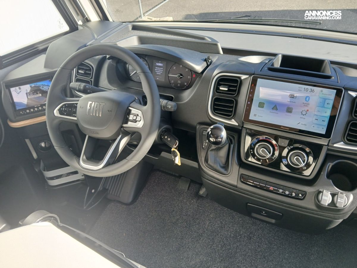 Tiroir bas de caisse, 2 panneaux solaire 100w, Batterie lithium 210 amp, Volant simili et aerateur gris alu, Pack media 9" apple car play, Boite automatique, Convertisseur 12/220 2000w, Douchette exterieure, Eclairage prise 12v 220v en soute, Haut parleur en chambre, Jantes aluminium 16"
