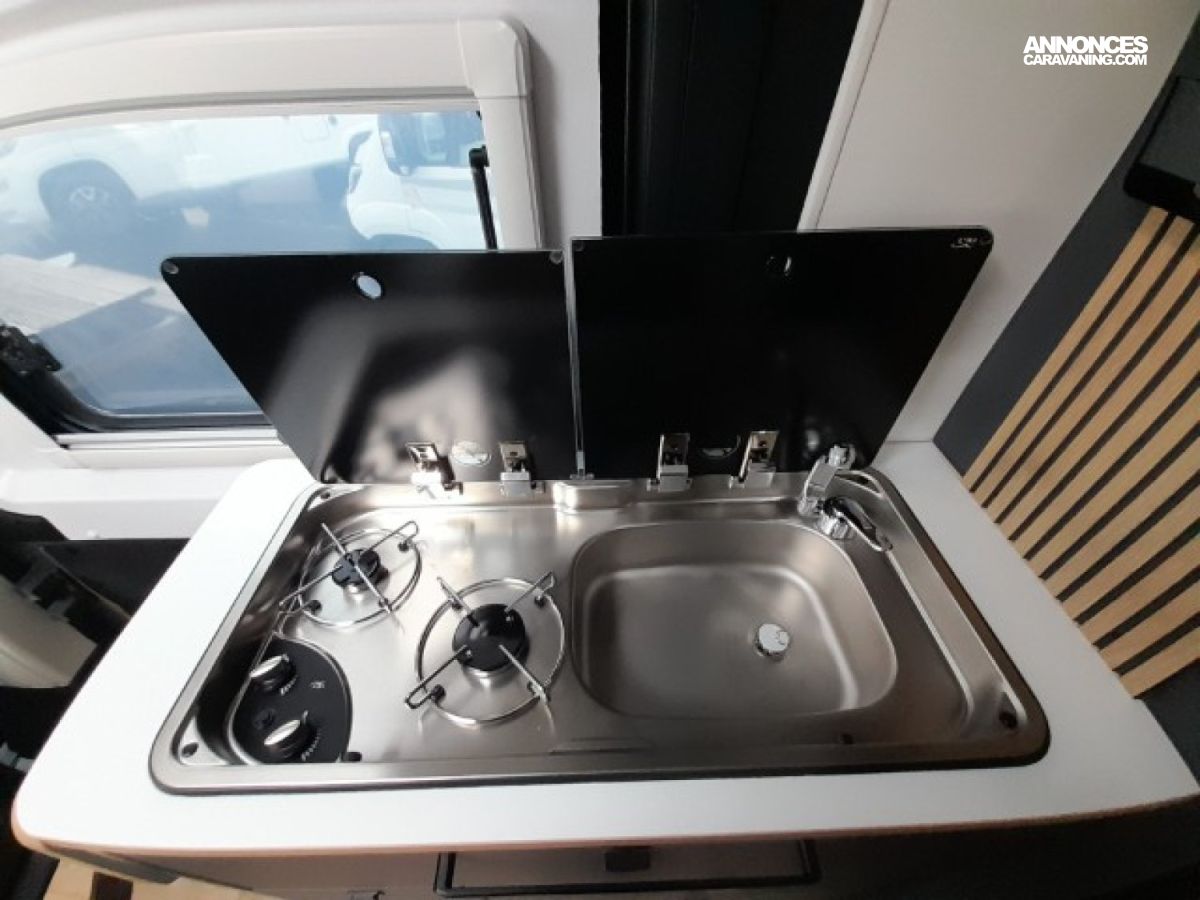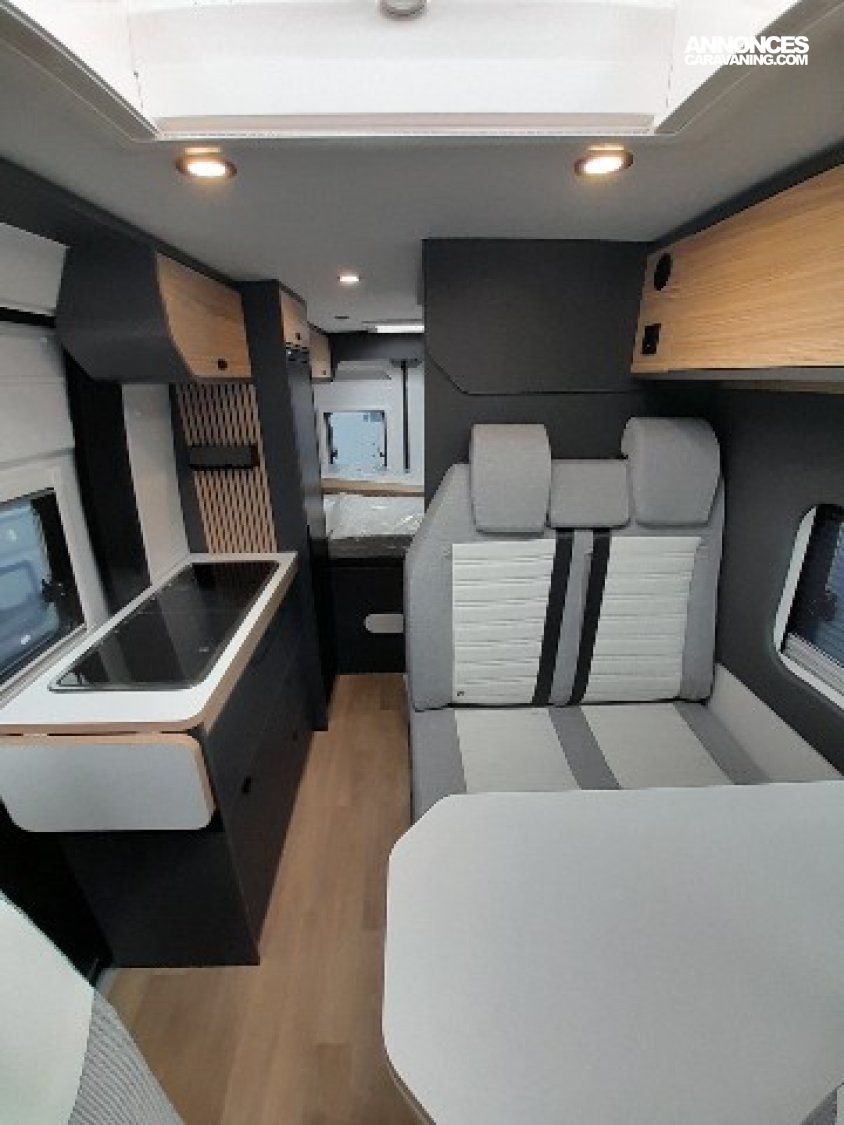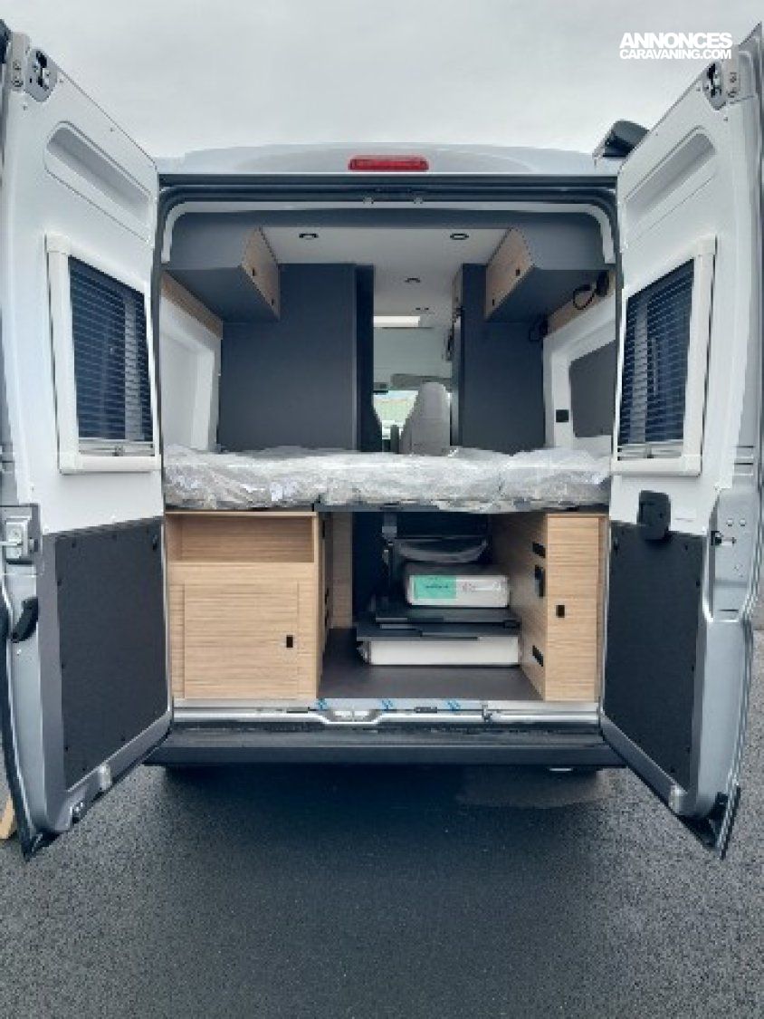 PACK 7 " : AUTORADIO 7 " PIONEER, DAB, APPLE CAR PLAY/ANDRO, PACK JANTES (JANTES ALLIAGE 16'' + VOLANT SIMILI + AERATEUR, PACK LITHIUM :1 BATTERIE LITHIUM 210 AH, BOOSTER, 2 PANNEAUX, PACK PARE-CHOC : PARE-CHOCS AV PEINT, ANTIBROUILLARD, SKID, PEINTURE CARROSSERIE METALISEE : GRIS ARTENSE, SELLERIE BI-TON ET BI-MATIERE SIMILI ET TISSU "CLOUD", STORE BANNE MANUEL