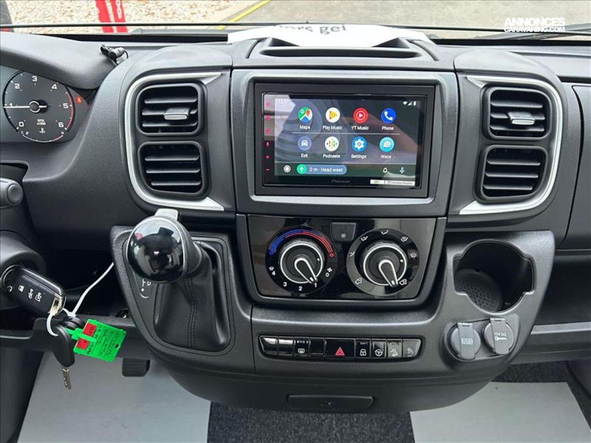 AUTORADIO 7 PIONEER, 1 PANNEAU SOALIRE EXTRAPLAT, 2 BATTERIES AGM 95 AH, ALLUMAGE AUTOMATIQUE DES FEUX + ESSUIE GLACE, VOLANT EN CUIR, PARE-CHOC PEINT, PACK JANTES, PHARES ANTIBROULLARD, STORE EXTERIEUR, CAPTEUR DE PRESSION DES PNEUS, FIAT 140 CV BVA, CHAUFFAGE TRUMA COMBI 4, FREIN DE PARKING ELECTRIQUE, OCCULATATIONS CABINE COULISSANTES, FRIGO BAS 140 L, JANTES ALU 16, NICHE DEGAGEE, CALANDRE NOIRE, CAMERA DE RECUL, DAB / APPLECAR / ANDROID AUTO, DOUCHETTE EAU FROIDE / CHAUDE DANS LA SOUTE