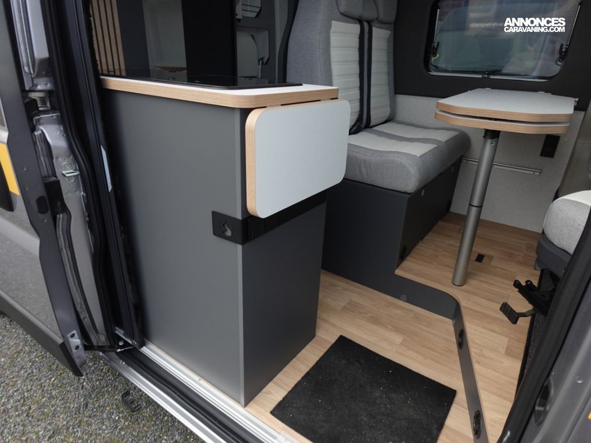 Le fourgon aménagé Bavaria K600G offre une cuisine fonctionnelle avec cinq tiroirs compartimentés et une poubelle intégrée, permettant un rangement organisé et pratique. Son grand salon peut accueillir confortablement jusqu'à quatre personnes, offrant un espace convivial pour se détendre et socialiser. De plus, l'espace douche est spacieux, offrant confort et commodité lors de l'hygiène quotidienne. Enfin, le lit garage est équipé d'un matelas confortable et d'un sommier à lattes, assurant un repos réparateur pour une bonne nuit de sommeil.