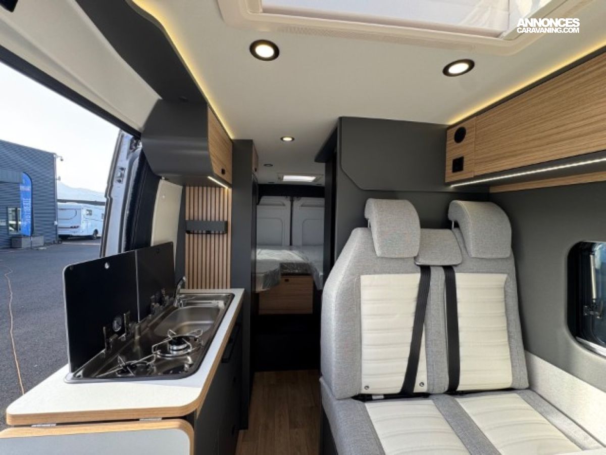 2 PANNEAUX SOLAIRES, BATTERIE LITHIUM 210 AH, BOITE AUTOMATIQUE, BOOSTER, CAMERA DE RECUL, PACK 7 " : AUTORADIO 7 " PIONEER, DAB, APPLE CAR PLAY/ANDRO, PACK JANTES (JANTES ALLIAGE 16'' + VOLANT SIMILI + AERATEUR, PACK LITHIUM, PACK PARE-CHOC : PARE-CHOCS AV PEINT, ANTIBROUILLARD, SKID, PEINTURE CARROSSERIE METALISEE : GRIS ARTENSE, SELLERIE BI-TON ET BI-MATIERE "CLOUD", STORE BANNE MANUEL