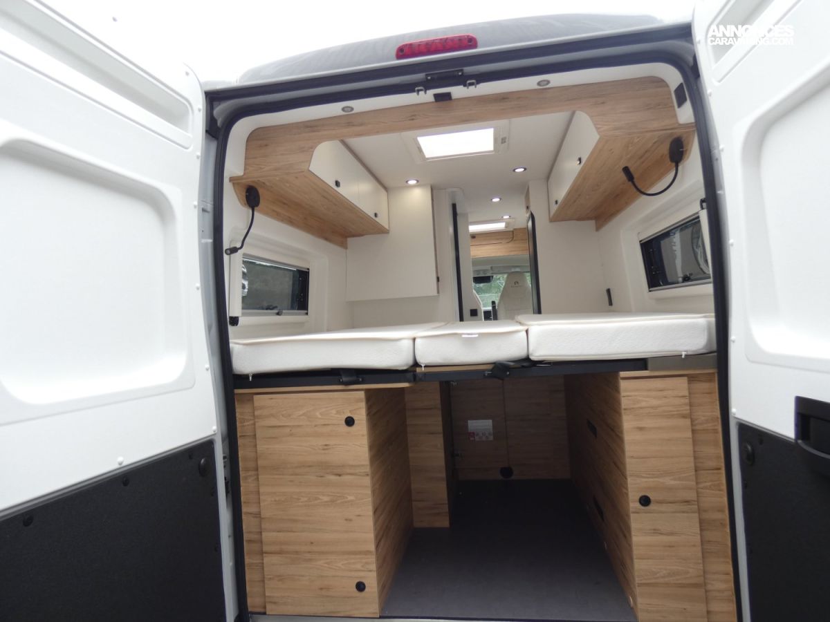 Régulateur + limiteur de vitesse, 3e Couchage, Stores de cabine, Batterie AGM, Panneau Solaire, Station multimédia + Caméra de recul, Jantes Alu 16", Roue de secours, Attelage, Store extérieur, Smart TV, Antenne Hertzienne, Moustiquaire de porte, Marche-pieds électrique