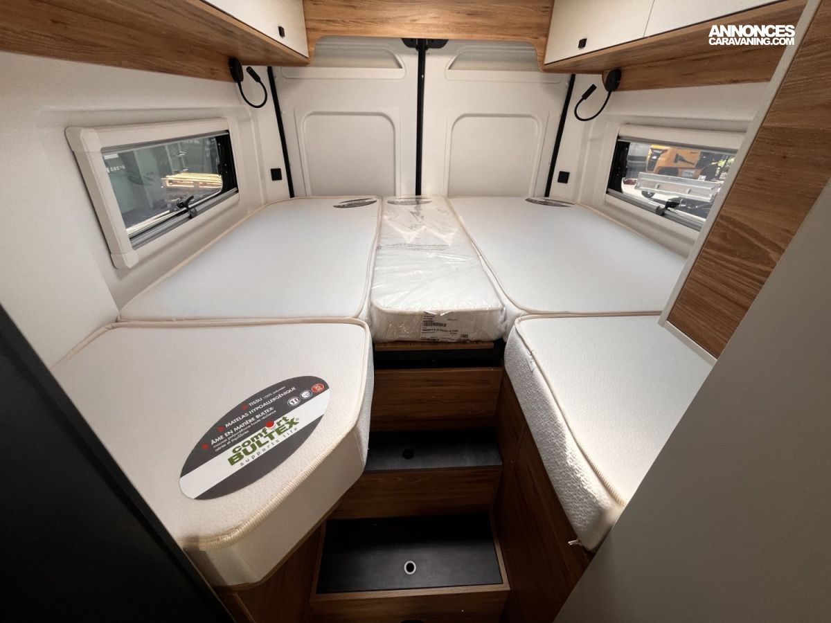 ABS - antiblocage des roues au freinage, Pack Energie, Pack Media 9’’, Pack luxe intérieur, Capteur de pluie et luminosité, Roue de secours, Réservoir 90 litres, Rétroviseurs électriques et dégivrants, Store, Pare-choc peint, Douchette, ESP, Housse de siège cabine, Moquette cabine, Niche dégagée, Capteur de pression des pneumatiques, Occultations Remis, Occultations cabine coulissantes frontale et latérales, Baie Salle de bain